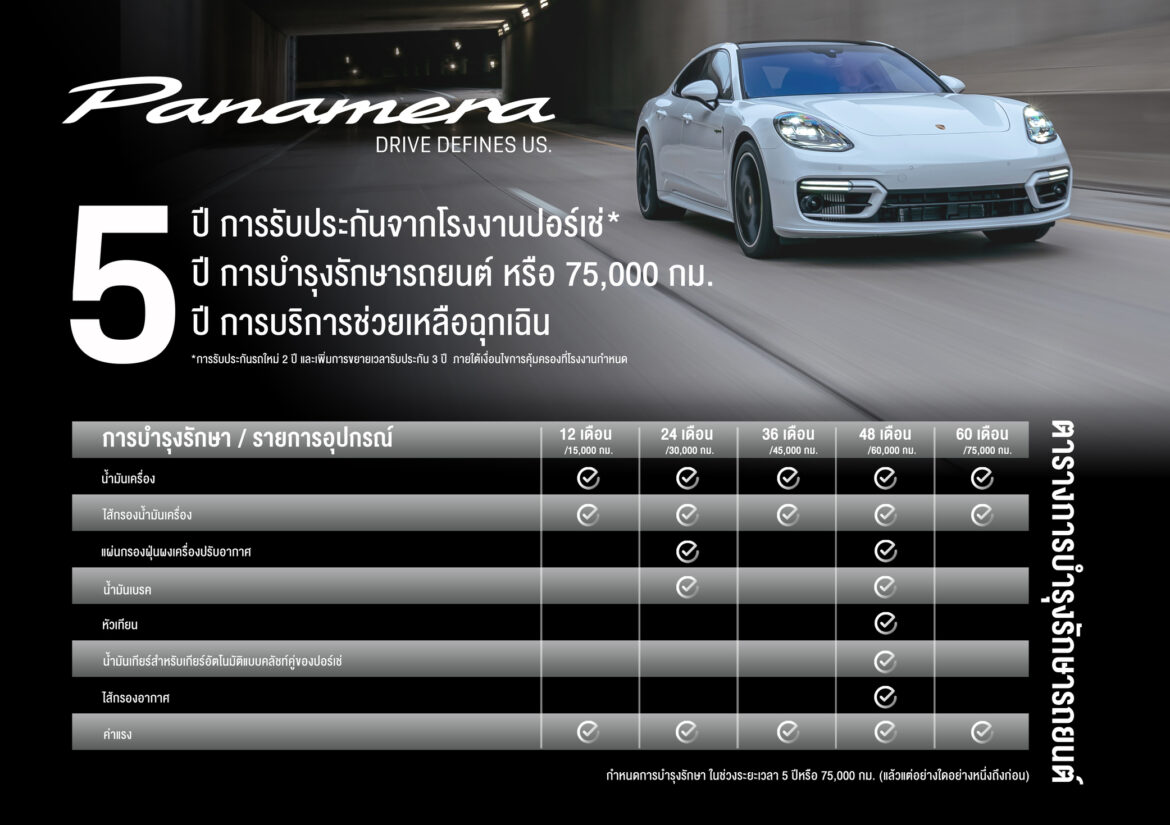 ปอร์เช่ ประเทศไทย โดย เอเอเอส กรุ๊ป ผู้นำเข้าและตัวแทนจำหน่ายรถยนต์ปอร์เช่อย่างเป็นทางการแต่เพียงผู้เดียวในประเทศไทยตอกย้ำความเป็นผู้นำยนตรกรรมสปอร์ตหรูระดับโลก เผยแคมเปญสุดพิเศษ “ดูแลรถยนต์ตลอดระยะเวลา 5 ปี” สำหรับรถปอร์เช่ พานาเมร่า (G2 II) ที่พร้อมส่งมอบทุกรุ่น ยนตรกรรมสปอร์ตซาลูนสุดหรู 4 ประตู รถปอร์เช่ พานาเมร่าประกอบไปด้วย ระบบช่วงล่างแบบถุงลมปรับระดับอัตโนมัติ ช่วยให้รถสปอร์ตรุ่นนี้มอบความนุ่มนวลและความสะดวกสบายในการขับขี่ พร้อมทั้งปรับระดับความสูงของตัวรถเพื่อเพิ่มสมรรถนะในการขับขี่แบบสปอร์ต โดยรถปอร์เช่พานาเมร่าที่เข้าร่วมแคมเปญนี้ มีทั้ง Panamera 4 E-Hybrid, Panamera 4 E-Hybrid Executive, Panamera 4 E-Hybrid Platinum Edition และ Panamera 4S E-Hybrid ที่พร้อมส่งมอบเพื่อตอบโจทย์ไลฟ์สไตล์ที่หลากหลายของท่าน ตอบรับแนวคิด “Drive Defines Us” ปอร์เช่ เชื่อว่าการขับขี่ไม่ใช่แค่การเดินทางจากจุดหนึ่งไปยังอีกจุดหนึ่ง แต่เป็นการแสดงออกถึงตัวตน ความหลงใหล และแรงบันดาลใจของผู้ขับขี่ รถสปอร์ตทุกรุ่นของปอร์เช่จึงไม่ใช่แค่ยานพาหนะ แต่เป็นส่วนหนึ่งของไลฟ์สไตล์และตัวตนที่แท้จริง จุดเด่นของปอร์เช่ คือการผสมผสานระหว่างสมรรถนะอันทรงพลัง เทคโนโลยีล้ำสมัย และดีไซน์ที่เป็นเอกลักษณ์ เพื่อมอบประสบการณ์การขับขี่ที่ไม่เหมือนใครให้แก่เจ้าของรถปอร์เช่ทุกท่าน