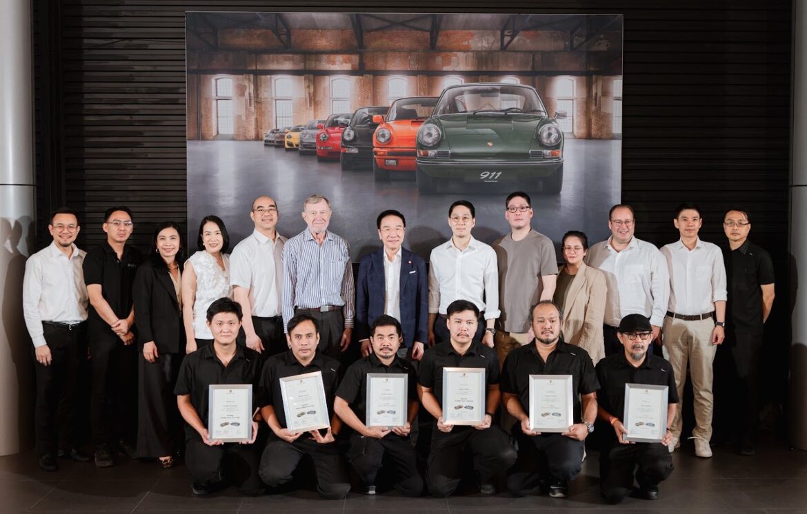 ” คุณวุฒิกร อินทรภูวศักดิ์ ” กรรมการผู้จัดการ กลุ่มบริษัท เอเอเอสฯ ได้แสดงความยินดี และชื่นชมกับทีมช่าง Porsche Classic Technician ทั้ง 6 คน ที่ผ่านการทดสอบระดับเหรียญทองและได้รับประกาศนียบัตร Porsche Classic Certificate