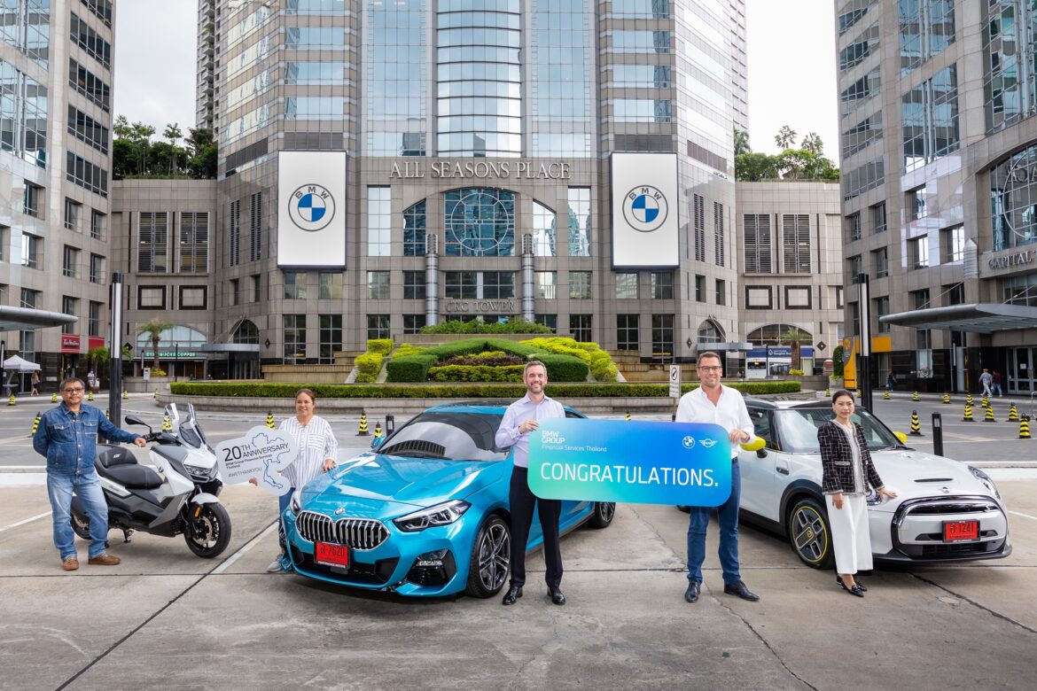บีเอ็มดับเบิลยู ไฟแนนเชียล เซอร์วิส ประเทศไทย นำโดย “มร. บียอร์น แอนทอนส์สัน” ประธานกรรมการบริหาร และ “มร. คาร์สเทน สตัมพ์ฟ”ประธานเจ้าหน้าที่ฝ่ายบริหารการเงิน มอบรถยนต์บีเอ็มดับเบิลยู 220i Gran Coupé M Sport รถยนต์พลังงานไฟฟ้ามินิ คูเปอร์เอสอี และมอเตอร์ไซค์บีเอ็มดับเบิลยู C 400 GT ให้แก่ “คุณชนาภา วงษ์จันทร์สาร” “คุณปิยรัตน์ กาวิละ” และคุณ “สุวโรจน์ เลิศเวช” ตามลำดับ ซึ่งเป็นผู้โชคดีจากการจับรางวัลภายใต้แคมเปญเฉลิมฉลองครบรอบ 20 ปี ของบีเอ็มดับเบิลยู ไฟแนนเชียล เซอร์วิส ประเทศไทย ณ อาคารออล ซีซั่นส์ เพลส ถนนวิทยุ เมื่อเร็ว ๆ นี้