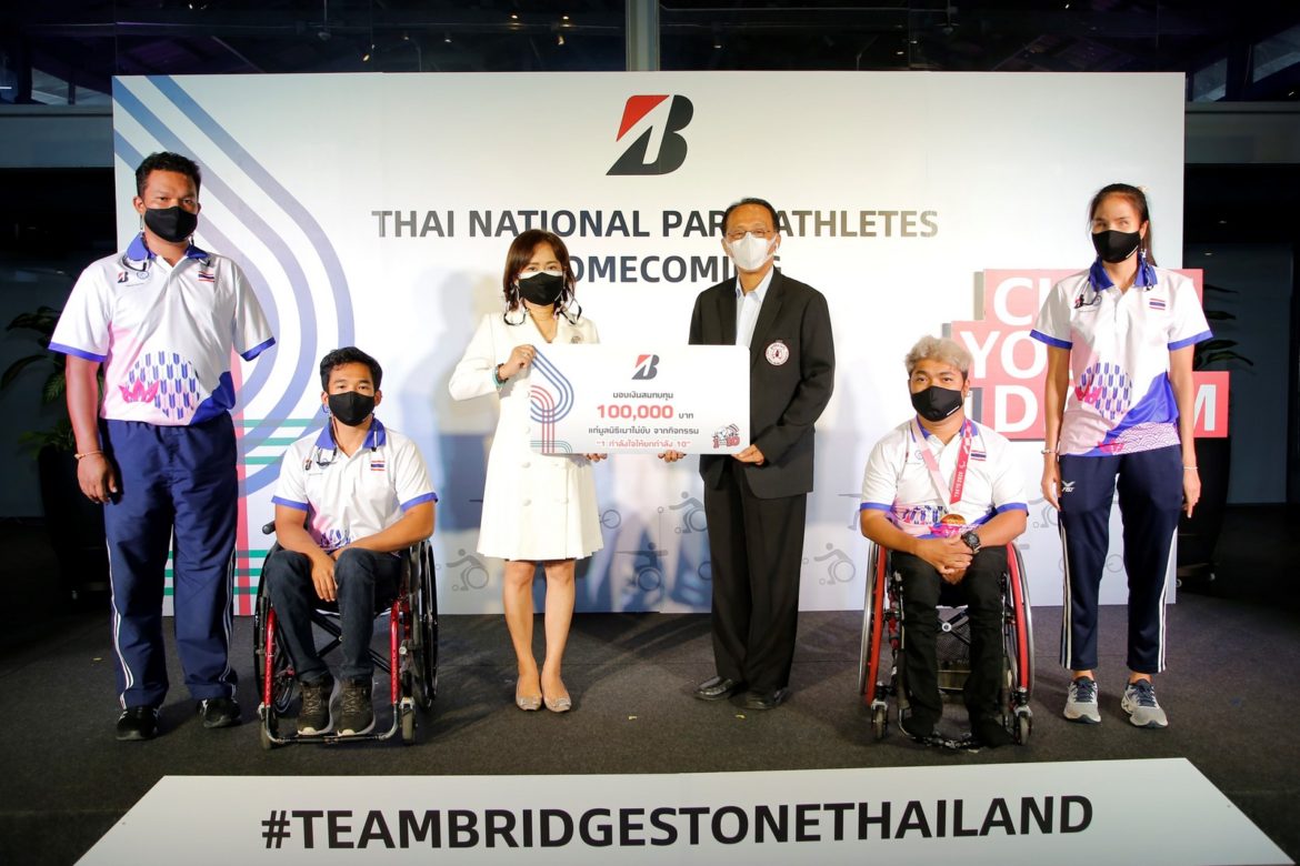 บริดจสโตน ประเทศไทย ต้อนรับ 4 นักกีฬาพาราลิมปิกทีมชาติไทยและในฐานะทีมบริดจสโตนประเทศไทย พร้อมมอบเงินสนับสนุนแก่ ” เจมส์-วรวุฒิ แสงอำภา ” นักกีฬาบอคเชียทีมชาติไทยหลังสิ้นสุดภารกิจ ใน “โตเกียว 2020 พาราลิมปิกเกมส์” ที่โชว์ฟอร์มอย่างสุดกำลังคว้าเหรียญทอง ประเภททีม ในมหกรรมกีฬาระดับโลกได้เป็นผลสำเร็จ พร้อมส่งมอบเงิน 100,000 บาท จากโครงการ “1 กำลังใจให้ยกกำลัง 10” แก่ “มูลนิธิเมาไม่ขับ” เพื่อส่งต่อพลังไล่ล่าความฝันนี้ แปรเปลี่ยนเป็นพลังยิ่งใหญ่สู่ผู้พิการในสังคมไทย