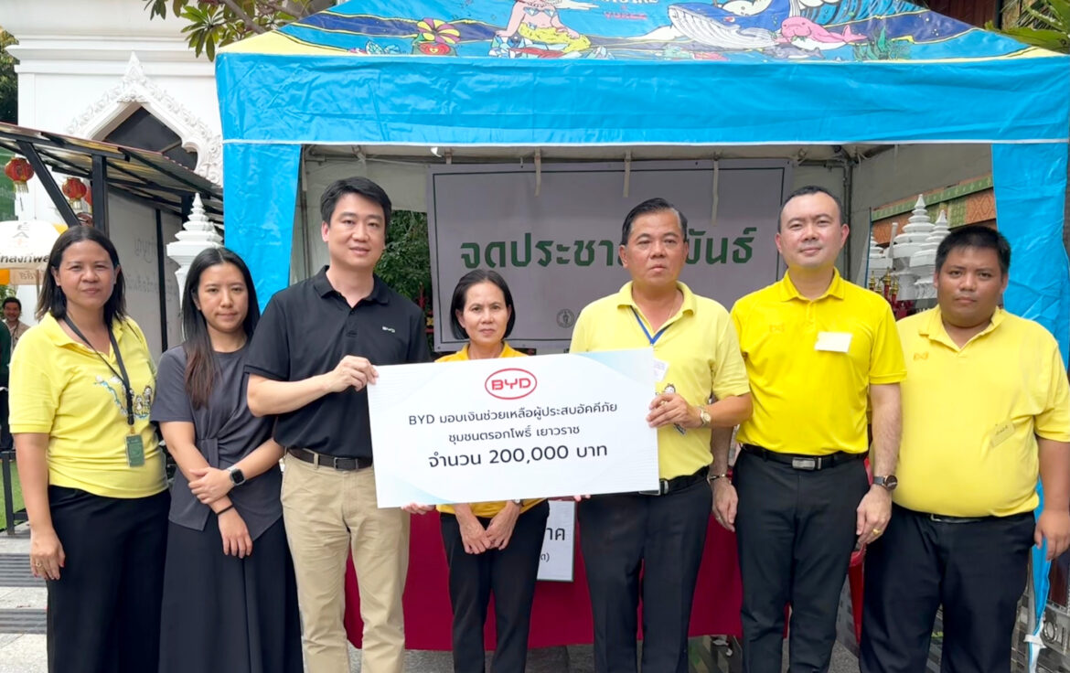บริษัท บีวายดี ออโต้ (ประเทศไทย) จำกัด ได้ทำการมอบเงินช่วยเหลือผู้ประสบอัคคีภัยในชุมชนตรอกโพธิ์ เยาวราช จำนวน 200,000 บาท โดยมี นายประวิทย์ วิจิตรธนกูล ผู้จัดการฝ่ายการพาณิชย์ บริษัท บีวายดี ออโต้ (ประเทศไทย) จำกัด ตัวแทนจากบริษัทฯ (ด้านซ้าย) เป็นผู้ส่งมอบเงินช่วยเหลือในครั้งนี้ โดยมีนายวัลลภ เกียรติวรศรีกุล ผู้อำนวยการเขตสัมพันธวงศ์ (ด้านขวา) เป็นผู้รับมอบ ทางบริษัท บีวายดี ออโต้ (ประเทศไทย) จำกัด
