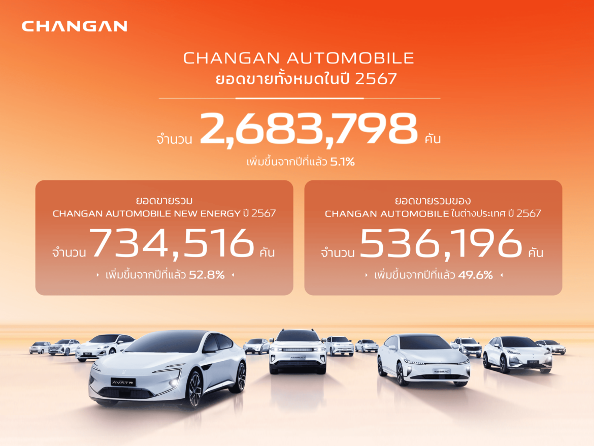 การันตีด้วยยอดขายที่เติบโตอย่างมีนัยสำคัญในกลุ่มธุรกิจหลัก ไม่ว่าจะเป็น แบรนด์รถยนต์อันหลากหลายที่มียอดขาย 2.23 ล้านคัน ทั้งยอดขายรถยนต์พลังงานใหม่ (NEV) เพิ่มขึ้น 52.8% เป็น 734,516 คัน และยอดขายในต่างประเทศเพิ่มขึ้นอย่างก้าวกระโดดถึง 49.6% เป็น 536,196 คัน ตอกย้ำความเป็นผู้นำของ CHANGAN ในอุตสาหกรรมยานยนต์โลก ตลอดจนความสำเร็จในการก้าวเป็นผู้นำด้านยนตรกรรมอัจฉริยะ ปล่อยคาร์บอนต่ำ และเป็นมิตรกับสิ่งแวดล้อม