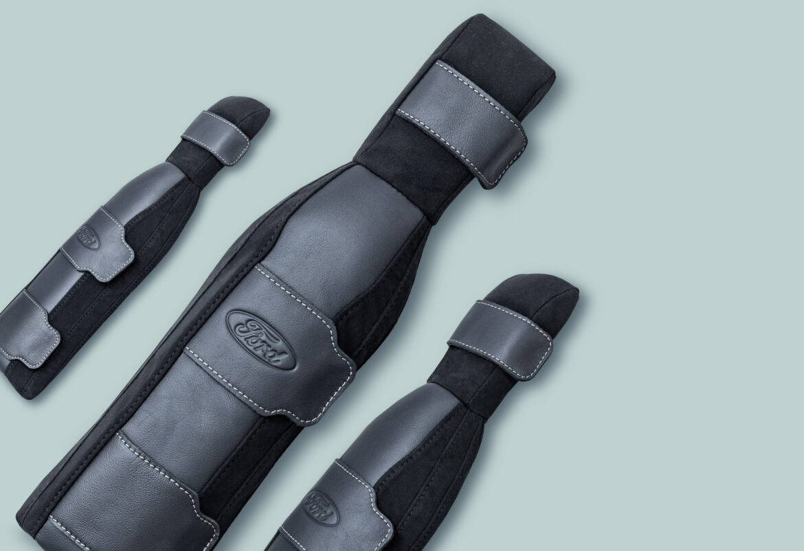 อุปกรณ์เสริมเข็มขัดนิรภัยนี้ ผลิตขึ้นจากโฟมที่มีการระบายอากาศดีและนุ่ม หุ้มด้วยผ้าที่มีคุณสมบัติคล้ายกำมะหยี่ซึ่งมีส่วนประกอบจากพลาสติกรีไซเคิลมากกว่า 40% ออกแบบมาให้รัดติดกับเข็มขัดนิรภัยด้วยเทปเวลโคร เพื่อช่วยลดแรงกดทับบนหน้าอกของผู้ที่กำลังพักฟื้นจากการผ่าตัดหน้าอก เพิ่มความสะดวกสบายขณะขับรถ โดยมีเลียร์ คอร์เปอเรชัน บริษัทผลิตอุปกรณ์เสริมสำหรับรถยนต์ชั้นนำในอเมริกาเป็นผู้ผลิตอุปกรณ์เสริมเข็มขัดนิรภัยนี้ โดยฟอร์ดจะมอบอุปกรณ์เสริมเข็มขัดนิรภัยให้กับผู้ป่วยในสหรัฐฯ โดยไม่คิดค่าใช้จ่าย เพียงลงทะเบียนผ่านทางออนไลน์ โดยบริษัทจะเริ่มจัดส่งของให้ได้ตั้งแต่ช่วงกลางเดือนพฤศจิกายน 2567 เป็นต้นไป