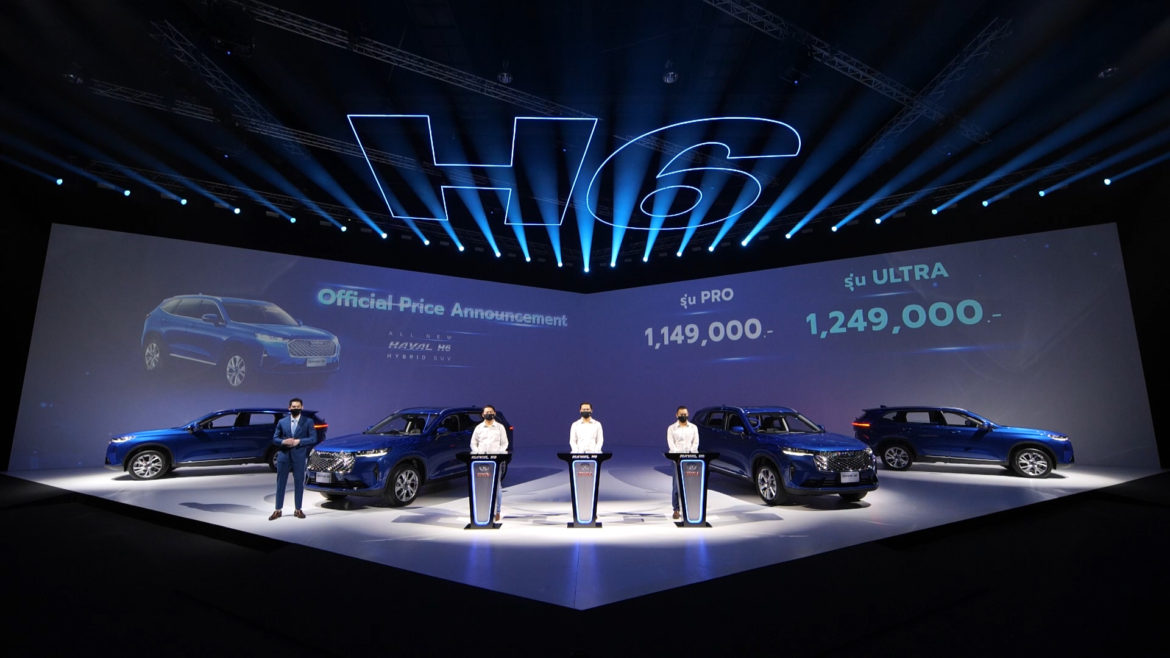 All New HAVAL H6 Hybrid SUV เปิดตัวอย่างเป็นทางการในประเทศไทย โดยมี 2 รุ่น ได้แก่ รุ่น PRO ที่ราคา 1,149,000 บาท และ รุ่น ULTRA ที่ราคา 1,249,000 บาท ซึ่งจะเป็นราคาแบบ “ONE PRICE” ราคาเดียวเท่ากันในทุกช่องทางจำหน่าย มาพร้อมกับแคมเปญ Premiere Deal สุดพิเศษในช่วงเปิดตัว ที่มาพร้อมดอกเบี้ยพิเศษ 1.79% นานสูงสุด 48 เดือน ฟรีประกันภัยชั้นหนึ่ง 1 ปีเต็ม ฟรีแพ็กเกจบำรุงรักษา GWM PRO Service Inclusive  (GPSI)  5 ปี หรือ 100,000 กิโลแมตร คะแนนสะสม GWM Point 15,000 คะแนน ฟรีบริการส่งมอบรถทั่วประเทศพร้อมน้ำมันเต็มถัง และสิทธิพิเศษอื่น ๆ อีกมากมาย รวมมูลค่ากว่า 100,000 บาท
