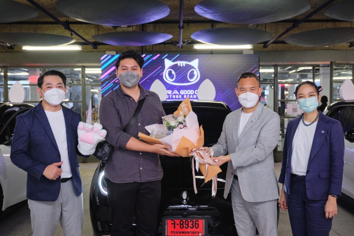 เกรท วอลล์ มอเตอร์ จัดพิธีส่งมอบ ORA Good Cat รถยนต์พลังงานไฟฟ้า 100% ให้แก่ลูกค้าชาวไทยกลุ่มแรก ณ ลิโด้ คอนเนค สยามสแควร์ โดยมีทีมผู้บริหารระดับสูง นำโดย ” มร. สตีเว่น หวัง ” รองประธาน เกรท วอลล์ มอเตอร์ ภูมิภาคอาเซียนและประเทศไทย และ ” นายณรงค์ สีตลายน ” กรรมการผู้จัดการ เกรท วอลล์ มอเตอร์ ประเทศไทย ร่วมแสดงความยินดีและ ส่งมอบรถยนต์ ล็อตแรกให้กับลูกค้าชาวไทย 11 ครอบครัว ในวันที่ 11 พฤศจิกายน พ.ศ. 2564 เพื่อสร้างประสบการณ์ขับขี่อัจฉริยะด้วยพลังงานสะอาดพร้อมเทคโนโลยีล้ำสมัยแห่งยุคสู่ท้องถนนไทย ตอกย้ำจุดยืน xEV Leader อย่างต่อเนื่อง หลังจากที่ได้เปิดตัวสถานีอัดประจุไฟฟ้า G-Charge Supercharging Station หนึ่งในสถานีอัดประจุไฟฟ้าสาธารณะ DC Fast Charge สำหรับรถยนต์นั่งพลังงานไฟฟ้า 100% พร้อมระบบโซลาร์เซลล์ที่ใหญ่ที่สุดในประเทศไทย ณ สยามสแควร์ ไปเมื่อต้นเดือนพฤศจิกายนที่ผ่านมา เดินหน้าผลักดันไทยเข้าสู่สังคมยานยนต์ไฟฟ้าอย่างเต็มรูปแบบและยั่งยืน