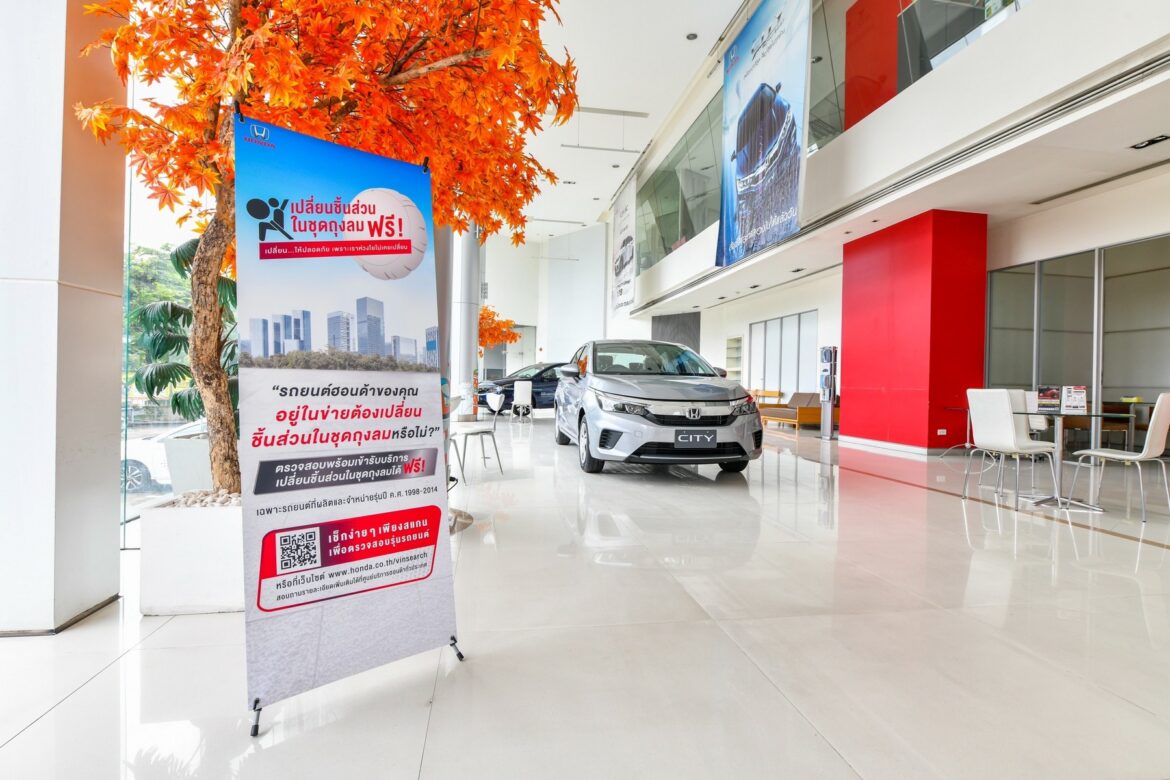 เพราะความปลอดภัยเป็นหนึ่งในเป้าหมายหลักการดำเนินธุรกิจของฮอนด้าในปีพ.ศ. 2593 เพื่อมุ่งสร้างสังคมปลอดอุบัติเหตุและลดการเสียชีวิตที่เกี่ยวข้องกับรถยนต์และรถจักรยานยนต์ฮอนด้าทั่วโลกให้เป็นศูนย์ (Zero Traffic Collision Fatalities) บริษัท ฮอนด้า ออโตโมบิล (ประเทศไทย) ให้ความสำคัญกับคุณภาพของผลิตภัณฑ์และความปลอดภัยของลูกค้าด้วยความห่วงใยเสมอมา เช่นเดียวกับกรณีการเปลี่ยนชิ้นส่วนในชุดถุงลม เพื่อแสดงความรับผิดชอบต่อคุณภาพผลิตภัณฑ์ และเสริมความมั่นใจและความปลอดภัยในการขับขี่บนท้องถนน เดินหน้าแคมเปญ “เปลี่ยน…ให้ปลอดภัย เพราะเราห่วงใยไม่เคยเปลี่ยน” แจ้งลูกค้าฮอนด้าที่มีรถยนต์อยู่ในข่ายต้องเปลี่ยนชิ้นส่วนในชุดถุงลมที่ยังไม่ได้เข้ารับบริการ สามารถนำรถยนต์เข้ารับบริการได้ที่ศูนย์บริการฮอนด้า ทั่วประเทศ 228 แห่ง ได้โดยไม่มีค่าใช้จ่ายใด ๆ ทั้งสิ้น