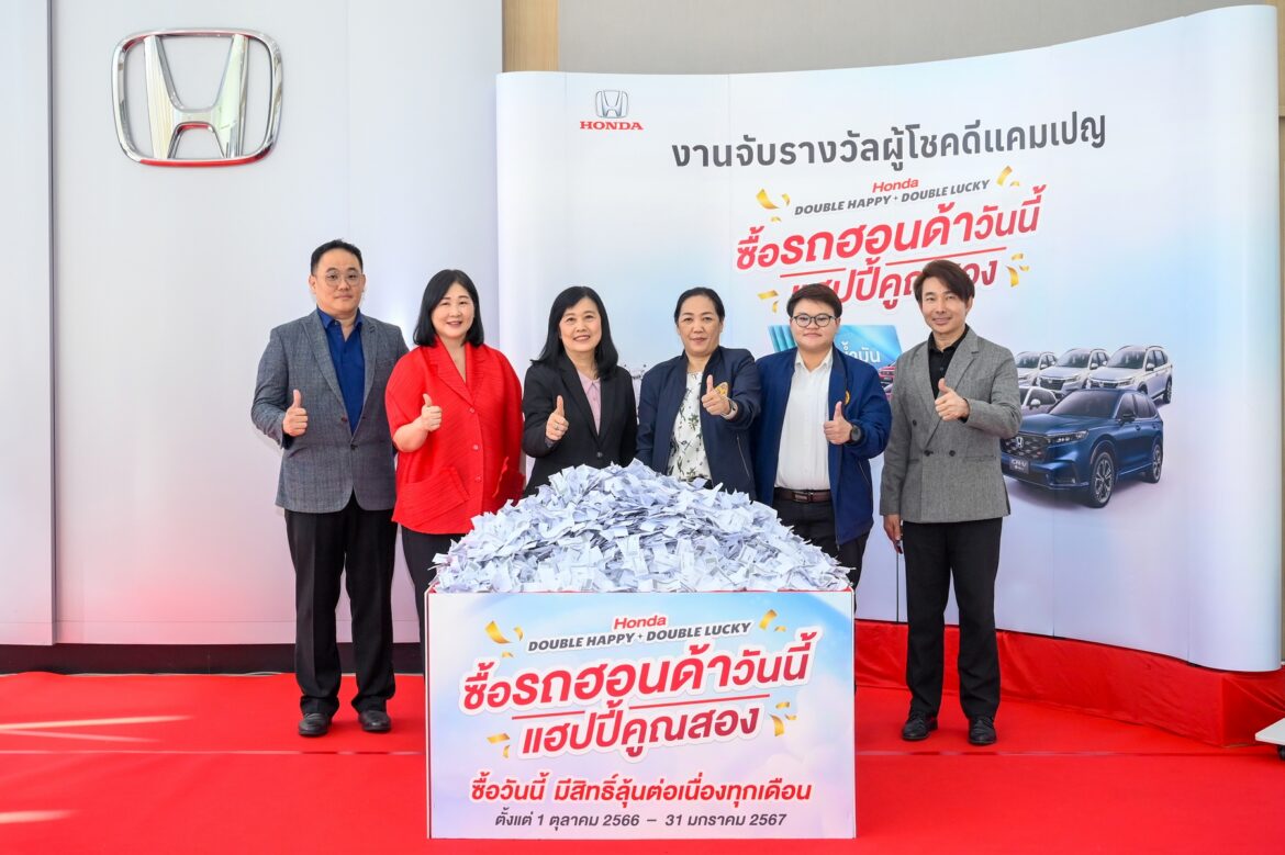 บริษัท ฮอนด้า ออโตโมบิล (ประเทศไทย) จำกัด ได้ทำการจับรางวัลผู้โชคดีจากแคมเปญ “Honda Double Happy, Double Lucky ซื้อรถฮอนด้าวันนี้ แฮปปี้คูณสอง” เป็นครั้งที่ 3 เมื่อวันที่ 18 มกราคม 2567 พร้อมเชิญชวนลูกค้าซื้อและรับรถยนต์ฮอนด้า ภายในวันที่ 31 มกราคม 2567เพื่อร่วมเป็นผู้โชคดีในการจับรางวัลโค้งสุดท้ายของแคมเปญ โดยลูกค้าจะได้รับ 1 สิทธิ์ต่อการซื้อรถยนต์ 1 คัน เพื่อลุ้นรับรางวัล 2 ต่อ โดยต่อที่ 1 ลุ้นรับบัตรน้ำมันมูลค่า 20,000 บาท หรือ 10,000 บาท โดยมีจำนวนเพิ่มขึ้นในทุกเดือน รวม 3,000 รางวัล หากลูกค้ายังไม่ได้รับโชคในครั้งแรก ลูกค้าจะสามารถลุ้นได้ใหม่ทุกเดือนตลอดแคมเปญ และต่อที่ 2 ลูกค้าทุกคนมีสิทธิ์ลุ้นรางวัลใหญ่ รวม 30 รางวัล ได้แก่ รถยนต์ฮอนด้าเอสยูวี 4 รุ่น จำนวน 10 คันและรถจักรยานยนต์ ฮอนด้า จีออโน่ พลัส (GIORNO+) รุ่น ABS จำนวน 20 คัน รวมรางวัลทั้งสิ้น 3,030 รางวัลมูลค่ากว่า 52 ล้านบาท