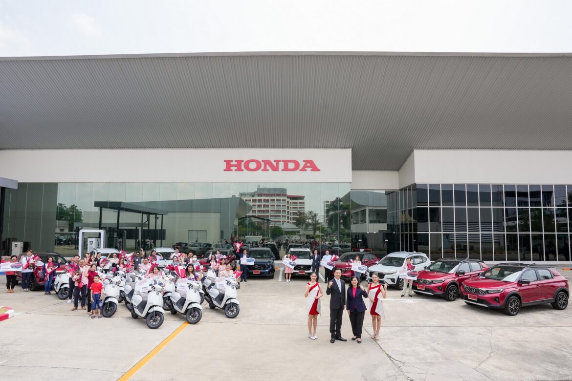 เพื่อเป็นการขอบคุณในความเชื่อมั่นและไว้วางใจของลูกค้าที่มีต่อแบรนด์ฮอนด้า บริษัท ฮอนด้า ออโตโมบิล (ประเทศไทย) จำกัด นำโดย นายฮิเดโอะ คาวาซากะ ประธานกรรมการบริหารและซีอีโอ พร้อมด้วย คุณอารีย์ สุชนลิมะกุล ผู้จัดการทั่วไปส่วนการขายและส่วนบริการหลังการขาย ส่งมอบรางวัลใหญ่รถยนต์ฮอนด้าในไลน์อัปเอสยูวี 4 รุ่น นำโดย รถยนต์ฮอนด้ารุ่น ซีอาร์-วี เกรด e:HEV RS 4WD สีน้ำเงินแคนยอนริเวอร์ (เมทัลลิก) จำนวน 1 คัน รถยนต์ฮอนด้ารุ่น ซีอาร์-วี  เกรด EL 4WD สีขาวแพลทินัม (มุก) จำนวน 1 คัน  รถยนต์ฮอนด้ารุ่น เอชอาร์-วี อี:เอชอีวี เกรด e:HEV RS สีแดงอิกไนต์ (เมทัลลิก) หลังคาสีดำ (ทูโทน) จำนวน 2 คัน รถยนต์ฮอนด้ารุ่น บีอาร์-วี เกรด EL สีขาวพรีเมียมซันไลท์ (มุก) จำนวน 3 คัน รถยนต์ฮอนด้ารุ่น ดับเบิลยูอาร์-วี  เกรด RS  สีแดงอิกไนต์ (เมทัลลิก) หลังคาสีดำ (ทูโทน) จำนวน 3 คัน พร้อมด้วยรถจักรยานยนต์ฮอนด้า จีออโน่ พลัส (GIORNO+) รุ่น ABS จำนวน 20 คัน รวมทั้งสิ้น 30 รางวัล รวมมูลค่ากว่า 13 ล้านบาท ให้ลูกค้าผู้โชคดีจากแคมเปญ Honda Double Happy, Double Lucky ซื้อรถฮอนด้าวันนี้ แฮปปี้คูณสอง” ที่ซื้อและรับรถยนต์ฮอนด้าตั้งแต่วันที่ 1 ตุลาคม 2566 – 31 มกราคม 2567 ณ บริษัท ฮอนด้า ออโตโมบิล (ประเทศไทย) จำกัด ส่วนการขายและบริการ และศูนย์ฝึกอบรม เมื่อวันอังคารที่ 9 เมษายน 2657 ที่ผ่านมานี้