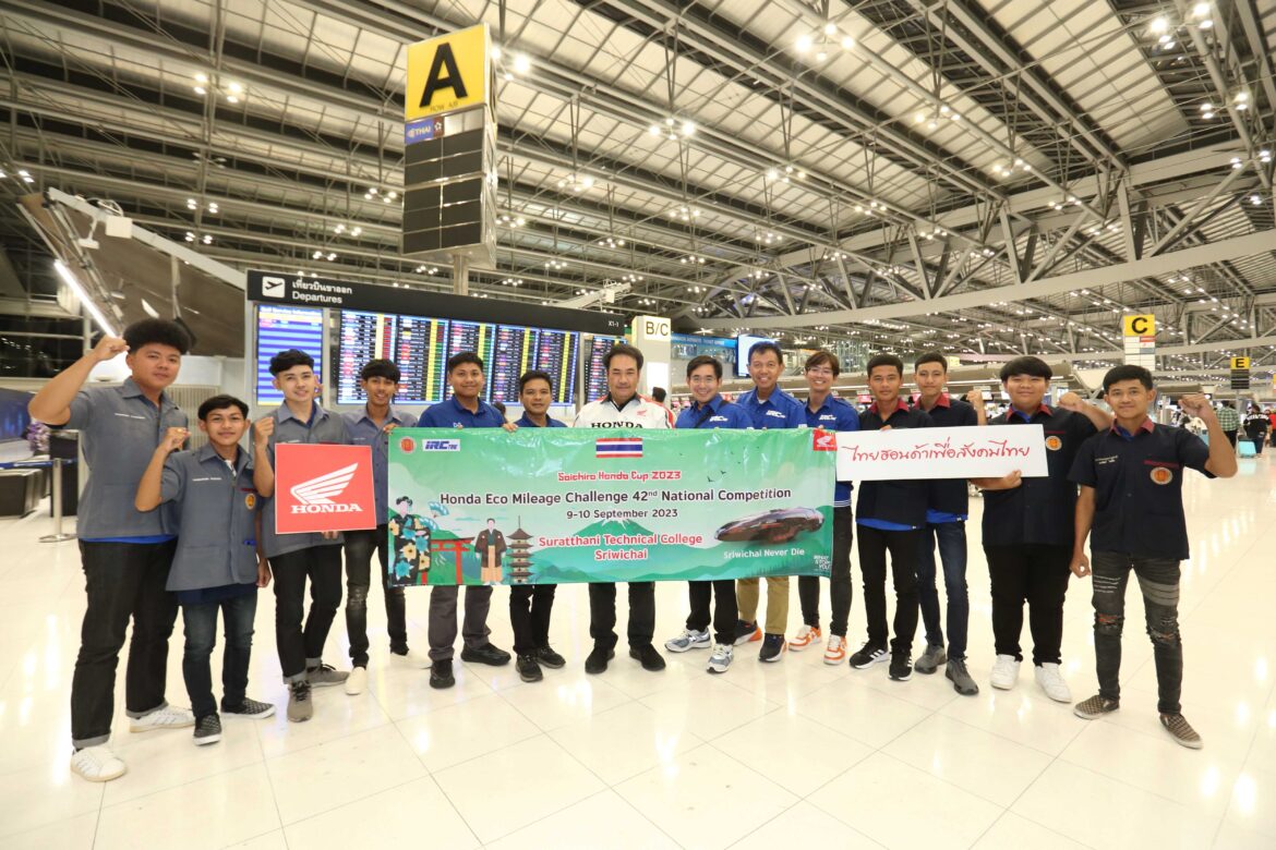 ไทยฮอนด้า ผู้ผลิตและจัดจำหน่ายรถจักรยานยนต์ และเครื่องยนต์อเนกประสงค์ฮอนด้าในประเทศไทย ส่งเยาวชนไทยจากวิทยาลัยเทคนิคสุราษฎร์ธานี ทีมตาปี และทีมศรีวิชัย เจ้าของตำแหน่งแชมป์และรองแชมป์ระดับประเทศรายการแข่งขันรถประหยัดเชื้อเพลิง Honda Eco Mileage Challenge ครั้งล่าสุด เข้าร่วมการแข่งขันรถประหยัดเชื้อเพลิงระดับนานาชาติรายการ “Soichiro Honda Cup 2023 Honda Eco Mileage Challenge 42nd National Competition” ที่ประเทศญี่ปุ่น ณ สนามทวินริง โมเตกิ