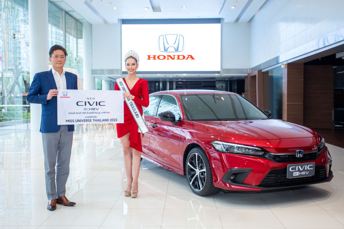 บริษัท ฮอนด้า ออโตโมบิล (ประเทศไทย) จำกัด หนึ่งในผู้สนับสนุนหลักเวทีการประกวด มิสยูนิเวิร์สไทยแลนด์ 2022 (Miss Universe Thailand 2022) โดย ” นายโนริยุกิ ทาคาคุระ ” ประธานกรรมการบริหารและซีอีโอ ร่วมแสดงความยินดีและส่งมอบรางวัลพิเศษ รถยนต์ ฮอนด้า ซีวิค อี:เอชอีวี ใหม่ รุ่น e:HEV RS สีแดงอิกไนต์ (เมทัลลิก) มูลค่า 1,259,000 บาท ให้แก่ “แอน-แอนนา เสืองามเอี่ยม” สาวงามผู้เดินตามความฝันด้วยความมุ่งมั่นจนสามารถคว้าตำแหน่งมิสยูนิเวิร์สไทยแลนด์ 2022 ไปครองได้สำเร็จ