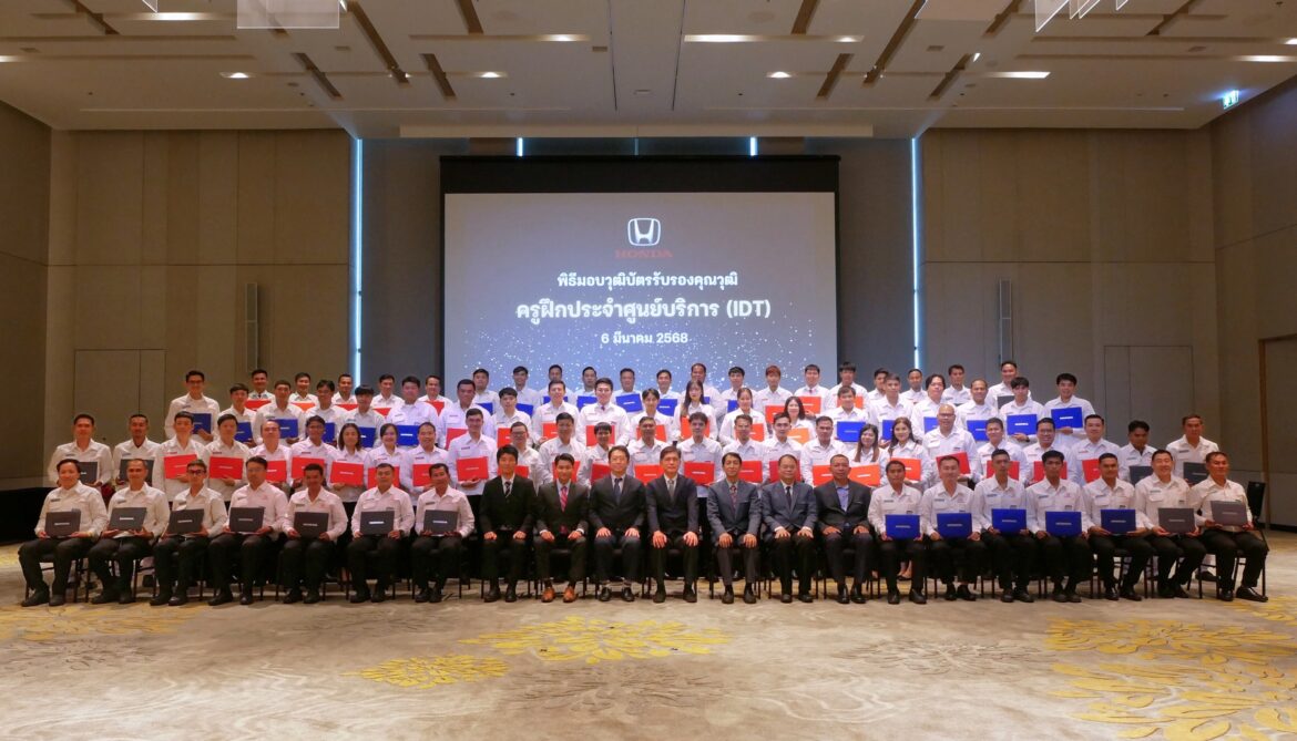 บริษัท ฮอนด้า ออโตโมบิล (ประเทศไทย) จำกัด ตอกย้ำความมุ่งมั่นในการส่งมอบผลิตภัณฑ์คุณภาพและการบริการที่ได้มาตรฐานเพิ่มทักษะบุคลากรเพื่อยกระดับการบริการอย่างต่อเนื่อง จัดพิธีมอบวุฒิบัตรรับรองครูฝึกประจำศูนย์บริการฮอนด้าทั้งหมด 80 คน ได้แก่ ครูฝึกช่างซ่อมตัวถังและสี ครูฝึกช่างเทคนิค และครูฝึกที่ปรึกษาการบริการ ที่ผ่านการฝึกอบรมหลักสูตรครูฝึกประจำศูนย์บริการหรือ IDT