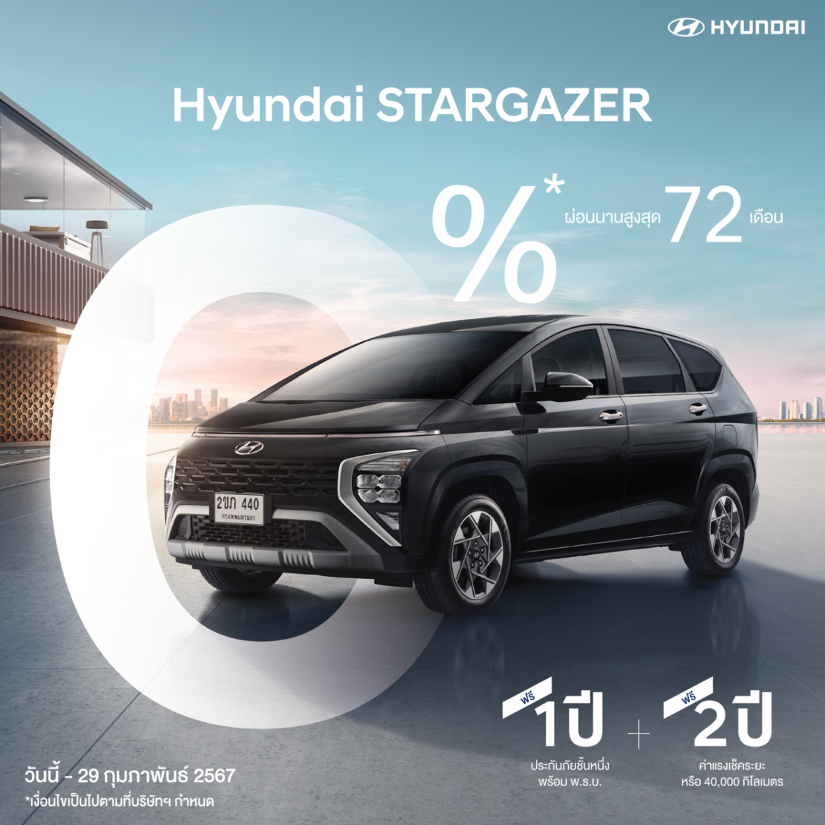 ฮุนได โมบิลิตี้ (ประเทศไทย) ต้อนรับศักราชใหม่ด้วยโปรโมชั่นพิเศษ ให้คุณเป็นเจ้าของฮุนไดคันใหม่ง่ายกว่าเดิม เป็นของขวัญปีใหม่สำหรับท่านและคนที่คุณรัก สงวนสิทธิ์สำหรับผู้ที่สั่งซื้อรถยนต์ฮุนไดรุ่นที่ร่วมรายการภายในเดือนกุมภาพันธ์ 2567 เท่านั้น โดยข้อเสนอพิเศษมีทั้งดอกเบี้ยเริ่มต้น 0%, ดอกเบี้ยอัตราพิเศษ, ฟรี ประกันภัยชั้นหนึ่งพร้อม พ.ร.บ. และ ฟรี ค่าแรงเช็คระยะสูงสุด 3 ปี หรือ 60,000 กิโลเมตร3