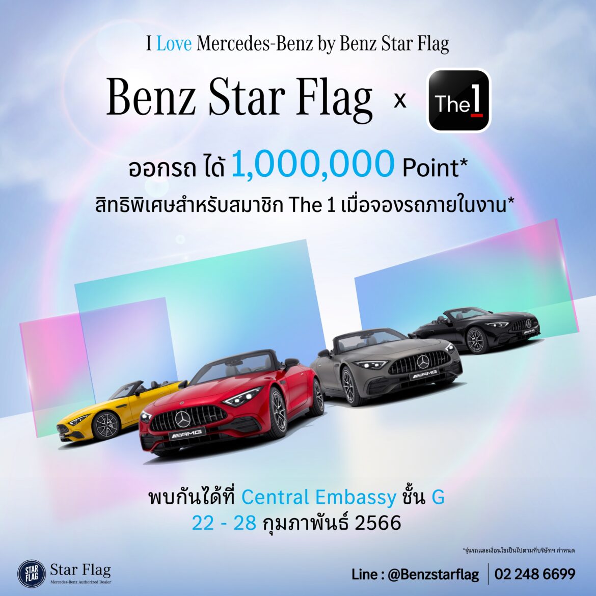 ในงาน “I Love Mercedes-Benz by Benz Star Flag” ทาง เบนซ์ สตาร์แฟลก ยังมอบสิทธิพิเศษ สำหรับสมาชิก The One Card ด้วยการแจกพ้อยส์ รวมมูลค่าถึง 1 ล้านพ้อยส์ ให้กับลูกค้าที่จองรถภายในงานและออกรถภายในวันที่ 20 มีนาคมศกนี้ ส่วนผู้ถือบัตรเครดิตที่ร่วมรายการ สามารถนำพ้อยส์ มาแลกเป็นส่วนลดได้สูงสุดถึง 50,000 บาท ขณะที่ลูกค้าที่อยาก Trade-in กับ Benz Star Flag ก็สามารถทำได้เลย โดยจะได้รับส่วนลดเพิ่มมูลค่าสูงสุดถึง 100,000 บาท