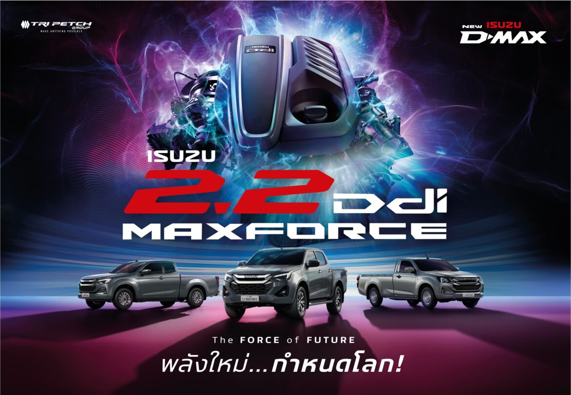 อีซูซุส่งเครื่องยนต์ดีเซลแห่งอนาคต ใหม่! 2.2 Ddi MAXFORCE…The FORCE of FUTURE พลังใหม่…กำหนดโลก พร้อมใหม่! เกียร์อัตโนมัติ 8 สปีด แบบ REV TRONIC กระตุ้นตลาดโค้งสุดท้าย แรงขึ้น เร็วขึ้น ประหยัดน้ำมันยิ่งกว่าเดิม ตอบโจทย์การใช้งานมากยิ่งขึ้น และมีค่า CO2 ต่ำที่สุดในรถระดับเดียวกัน ทั้งในรถอีซูซุ ดีแมคซ์ และ มิว-เอ็กซ์ และใหม่! 3.0 Ddi MAXFORCE สำหรับกลุ่มที่ต้องการเครื่องยนต์ที่มีกำลังสูง พร้อมให้สัมผัสที่โชว์รูมอีซูซุทั่วประเทศ ตั้งแต่วันที่ 28 พฤศจิกายน 2567 เป็นต้นไป
