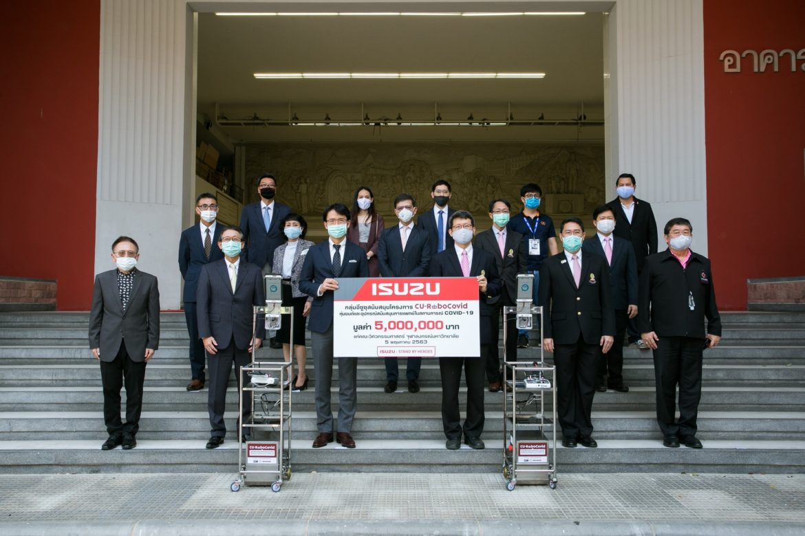 กลุ่มอีซูซุมอบเงิน 5 ล้านบาท ให้แก่คณะวิศวกรรมศาสตร์ จุฬาลงกรณ์มหาวิทยาลัย สำหรับโครงการ “CU-RoboCOVID” ซึ่งเป็นการพัฒนาหุ่นยนต์และอุปกรณ์สนับสนุนการแพทย์ในสถานการณ์ COVID-19 เพื่อส่งมอบให้แก่โรงพยาบาลทั่วประเทศ เป็นการเพิ่มประสิทธิภาพการปฏิบัติงานของบุคลากรทางการแพทย์และลดความเสี่ยงจากการติดเชื้อ โดยหุ่นยนต์ในชุดนี้ประกอบด้วย