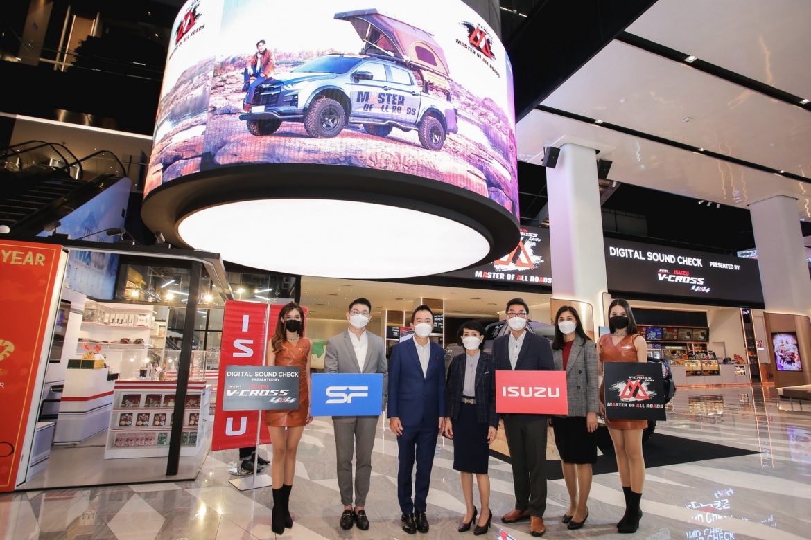 ” คุณปนัดดา เจณณวาสิน ” ประธานที่ปรึกษา และ ” คุณวิชัย สินอนันต์พัฒน์ ” กรรมการ บริษัท ตรีเพชรอีซูซุเซลส์ จำกัด ร่วมกับ ” คุณสุวัฒน์ ทองร่มโพธิ์ ” ประธานเจ้าหน้าที่บริหาร และ ” คุณสุวิทย์ ทองร่มโพธิ์ ” ประธานเจ้าหน้าที่บริหาร สายงานการตลาด บริษัท เอส เอฟ คอร์ปอเรชั่น จำกัด (มหาชน) ร่วมเปิดตัวภาพยนตร์โฆษณา Digital Sound Check ชุดใหม่ล่าสุด THE SOUND OF “MASTER OF ALL ROADS” ที่ถ่ายทอดเสียงบรรยากาศจริงจากการถ่ายทำภาพยนตร์สั้น “ISUZU V-CROSS 4×4 MASTER OF ALL ROADS…ตัวจริงทุกเส้นทาง” การเดินทางที่แสนประทับใจของนักแสดงหนุ่มหล่อ คุณนิว-ชัยพล จูเลียน พูพาร์ต กับ ISUZU V-CROSS 4×4 ให้ได้ฟังเสียงบรรยากาศการถ่ายทำในรูปแบบ ASMR เปรียบเสมือนให้ผู้ฟังได้อยู่ในบรรยากาศการถ่ายทำจริง ผ่านระบบภาพและเสียงสมบูรณ์แบบของโลกภาพยนตร์ ณ โรงภาพยนตร์ เอส เอฟ เวิลด์ ซีเนม่า ชั้น 7 ศูนย์การค้าเซ็นทรัลเวิลด์