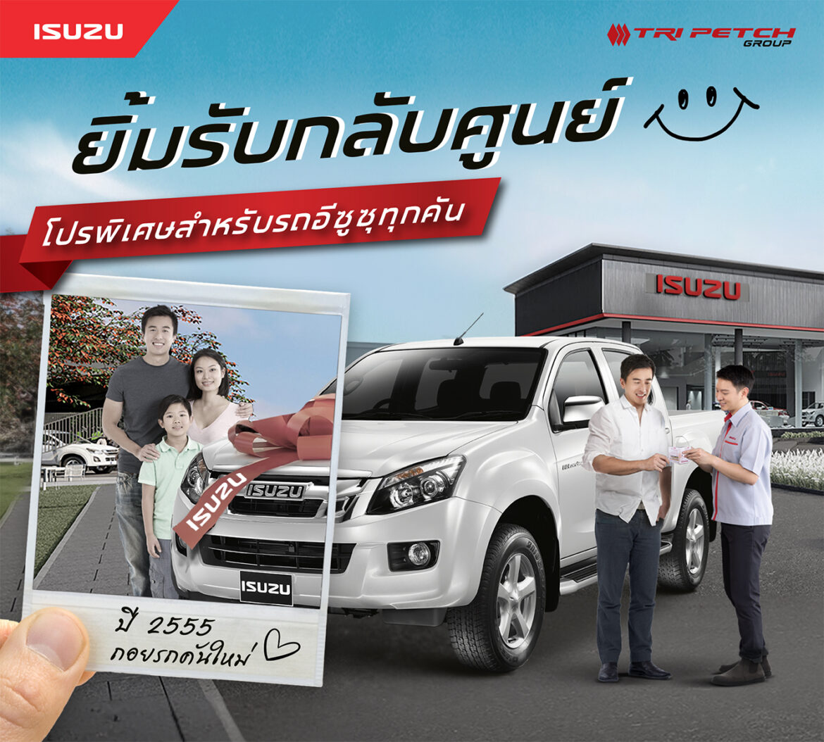 กลุ่มตรีเพชรโดย ” คุณวิชัย สินอนันต์พัฒน์ ” กรรมการ บริษัท ตรีเพชรอีซูซุเซลส์ จำกัด เชิญชวนผู้ใช้รถปิกอัพ รถยนต์นั่งอเนกประสงค์อีซูซุทุกรุ่น และรถบรรทุกอีซูซุขนาด 2 ตันขึ้นไป เข้ารับบริการที่ศูนย์บริการมาตรฐานอีซูซุกับแคมเพจ์นสุดพิเศษ “ยิ้มรับกลับศูนย์” ตั้งแต่วันที่ 1 กันยายน 2566 – 30 ธันวาคม 2566 โดยมีรายละเอียดดังนี้