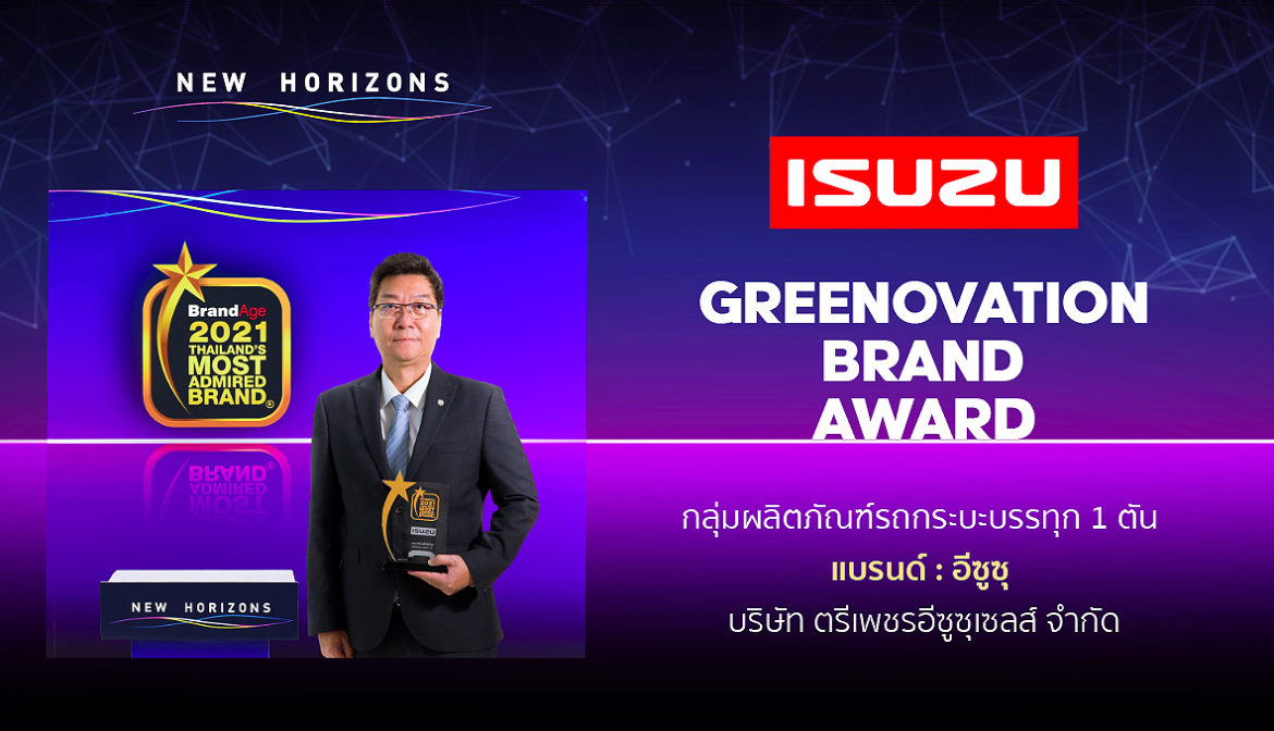 ” คุณวิชัย สินอนันต์พัฒน์ ” กรรมการ บริษัท ตรีเพชรอีซูซุเซลส์ จำกัด รับมอบรางวัลเกียรติยศ “แบรนด์รถปิกอัพที่น่าเชื่อถือสูงสุดประจำปี 2564” (Thailand’s Most Admired Brand 2021) ซึ่งเป็นผลจากการทำวิจัย “2021 Thailand’s Most Admired Brand & Why We Buy?” โดยนิตยสาร BrandAge ซึ่งเป็นผลจากการสำรวจและวิจัยความน่าเชื่อถือของแบรนด์ รวมถึงปัจจัยที่ทำให้เกิดการตัดสินใจซื้อของผู้บริโภคทั่วประเทศ โดย “แบรนด์อีซูซุ” ได้รับคะแนนความน่าเชื่อถือเป็นอันดับ 1 ในหมวดยานยนต์ กลุ่มประเภทรถปิกอัพ นอกจากนี้ยังได้รับรางวัล “Greenovation Brand Award” ซึ่งเป็นการคัดเลือกแบรนด์ที่มีความโดดเด่นมากเป็นพิเศษซึ่งมีนวัตกรรมด้านสิ่งแวดล้อมสู่สังคมเสมอ และมีบทบาทสำคัญในกิจกรรมเพื่อสิ่งแวดล้อมต่างๆอีกด้วย