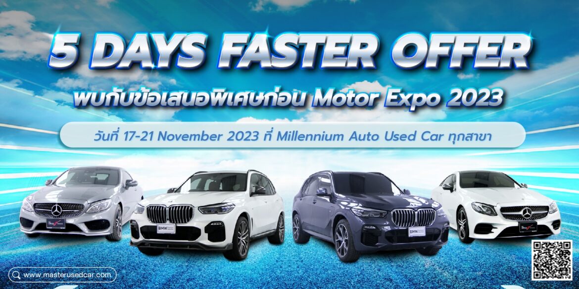บริษัท มาสเตอร์ เซอร์ทิฟายด์ ยูสคาร์ จำกัด ศูนย์รวมรถยนต์มือสองครบวงจร ภายใต้บริษัท มิลเลนเนียม กรุ๊ป คอร์ปอเรชั่น (เอเชีย) จำกัด (มหาชน) หยิบยื่นข้อเสนอพิเศษก่อนงานมอเตอร์ เอ็กซ์โป ผ่านกิจกรรม ‘5 DAYS FASTER OFFER’ ระหว่างวันที่ 17-21 พฤศจิกายนนี้
