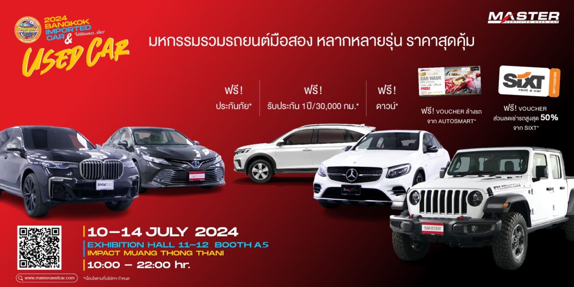 มาสเตอร์ เซอร์ทิฟายด์ ยูสคาร์ เดินเครื่องเต็มพิกัด จัดเต็มสูบที่งาน Bangkok Imported Car & Used Car Show 2024 คัดสรรรถยนต์มือสองหลากรุ่น หลายแบรนด์ มาจัดแสดงให้สัมผัสกันแบบจุใจ ระหว่างวันที่ 10-14 กรกฎาคม 2567 ที่บูธ A5 ฮอลล์ 11-12 อิมแพ็คเอ็กซิบิชันเซ็นเตอร์ ศูนย์การแสดงสินค้าและการประชุม อิมแพ็ค เมืองทองธานี