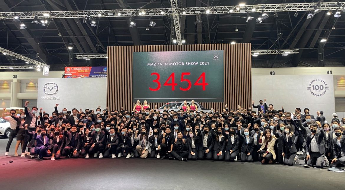 “งานมอเตอร์โชว์ปีนี้ มาสด้าประสบความสำเร็จอย่างงดงาม ด้วยยอดจองทั้งหมด 3,454 คัน แบ่งเป็นรถยนต์นั่ง จำนวน 1,625 คัน หรือคิดเป็นสัดส่วนถึง 47% ของยอดจองทั้งหมด รถยนต์ครอสโอเวอร์ตระกูล CX-Series จำนวน 1,758 คัน หรือเป็นสัดส่วน 50% และรถปิกอัพจำนวน 70 คัน หรือคิดเป็นสัดส่วน 2% ทั้งนี้แล้ว รถยนต์นั่งมาสด้า2 เป็นรุ่นที่ได้รับความนิยมมากที่สุด ตามมาด้วยครอสโอเวอร์มาสด้า CX-30, ครอสโอเวอร์น้องเล็กมาสด้า CX-3,รถยนต์นั่งมาสด้า3, มาสด้า CX-5, มาสด้า BT-50 และมาสด้า CX-8 ตามลำดับ ซึ่งเป็นตัวเลขใกล้เคียงกับที่เราได้ประมาณการณ์ไว้ และเราได้เตรียมดำเนินการส่งมอบรถให้กับลูกค้าที่จองทันที” นายชาญชัยกล่าว