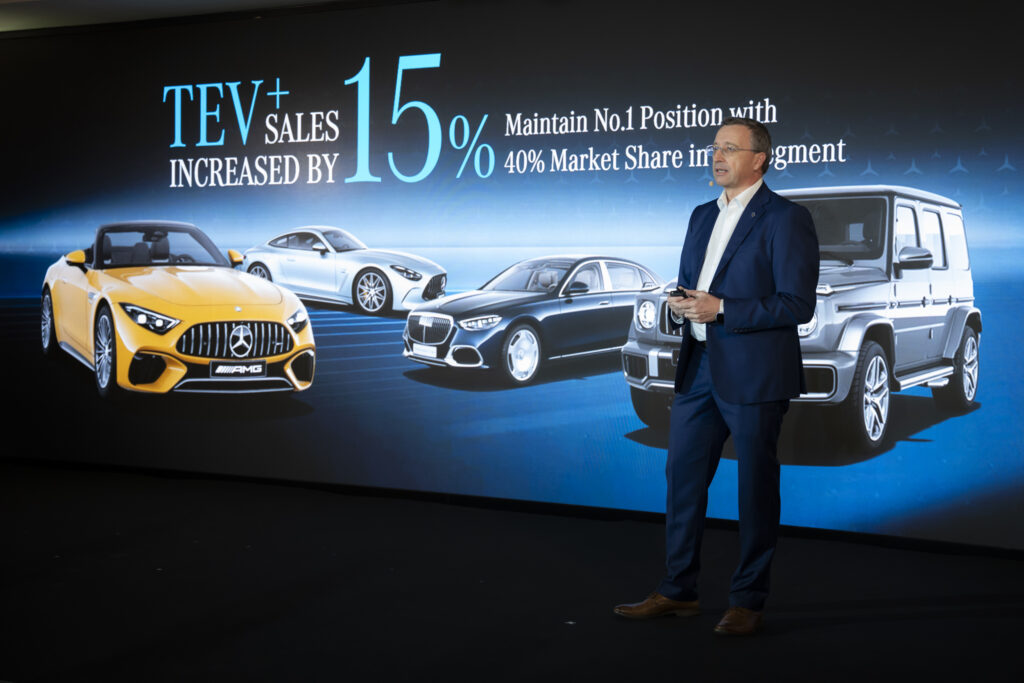 มร. มาร์ทิน ชเวงค์ ประธานเจ้าหน้าที่บริหารและกรรมการผู้จัดการใหญ่ บริษัท เมอร์เซเดส-เบนซ์ (ประเทศไทย) จำกัด กล่าวว่า “ในช่วงที่ผ่านมา เมอร์เซเดส-เบนซ์ ประเทศไทย ได้มีการปรับเปลี่ยนแผนการดำเนินธุรกิจในหลายมิติ ทั้งการปรับใช้โมเดลธุรกิจ Retail of the Future รวมถึงการสร้างกลยุทธ์และกิจกรรมทางการตลาดเพื่อยกระดับประสบการณ์ที่ดียิ่งขึ้นให้กับผู้บริโภคชาวไทย โดยในปี 2568 ที่ผ่านมา ถือเป็นปีที่สะท้อนให้เห็นถึงการเปลี่ยนผ่านเข้าสู่ยุคของรถยนต์พลังงานไฟฟ้าอย่างชัดเจน อ้างอิงจากการเติบโตของยอดขายรถยนต์พลังงานไฟฟ้า 100% และรถยนต์ปลั๊กอินไฮบริดของแบรนด์ โดยในส่วนของรถยนต์ระดับ Top-End Luxury (TEV+) มีการเปิดตัวเพิ่มเติมถึง 4 รุ่น ได้แก่ Mercedes-AMG SL 55, Mercedes-AMG GT 63, Mercedes-AMG G 63 และ G 450 d Edition STRONGER THAN THE 1980s ซึ่งสอดคล้องกับเทรนด์การเติบโตในระดับโลกของแบรนด์ Mercedes-AMG และโมเดลระดับตำนานอย่าง G-Class