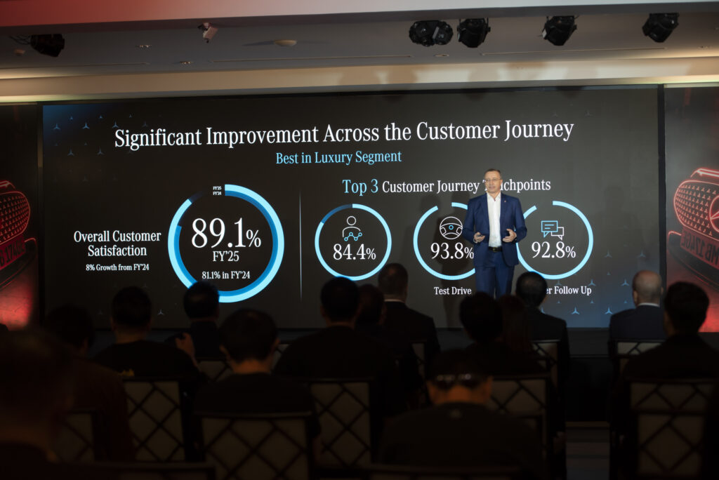 นายพุทธิ ตุลยธัญ รองประธานเจ้าหน้าที่บริหารและกรรมการฝ่ายบริการลูกค้า บริษัท เมอร์เซเดส-เบนซ์ (ประเทศไทย) จำกัด ได้กล่าวถึงความสำเร็จและวิสัยทัศน์ด้านบริการลูกค้าว่า “ในปี 2568 ที่ผ่านมา ฝ่ายบริการลูกค้าประสบความสำเร็จอย่างโดดเด่น โดยคว้าอันดับที่ 2 ในการรักษาลูกค้าของเมอร์เซเดส-เบนซ์ ในระดับภูมิภาค และได้รับคะแนนความพึงพอใจของลูกค้า (5 Star Rater) สูงถึง 4.90 คะแนน โดยมีการเปิดตัวบริการใหม่ อาทิ Mercedes-Benz In-Car Store ในเดือนธันวาคม เพื่อให้ลูกค้าสามารถอัปเกรดหรือต่ออายุแพ็กเกจ Digital Extras ได้อย่างง่ายดายผ่านหน้าจอรถยนต์รุ่นที่รองรับ* รวมถึงการนำเสนอโปรแกรม Service Select ทางเลือกใหม่สำหรับการบำรุงรักษารถยนต์ที่มีอายุ 7 ปีขึ้นไป* พร้อมเสริมพอร์ตโฟลิโออะไหล่แท้เมอร์เซเดส-เบนซ์ ด้วย StarParts ซึ่งเป็นอะไหล่กลุ่มบำรุงรักษาที่คุ้มค่าสำหรับรถยนต์อายุ 5 ปีขึ้นไปโดยเฉพาะ และการแนะนำระบบ XENTRY Workshop เพื่อยกระดับประสบการณ์ดิจิทัลของลูกค้าให้ดียิ่งขึ้น