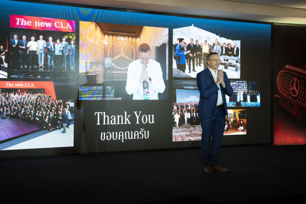 มร. คริสเตียน เชลล์ ประธานเจ้าหน้าที่บริหารและกรรมการผู้จัดการใหญ่ บริษัท เมอร์เซเดส-เบนซ์ (ประเทศไทย) จำกัด กล่าวว่า “ในฐานะผู้นำคนใหม่ของเมอร์เซเดส-เบนซ์ ประเทศไทย เรามีความยินดีเป็นอย่างยิ่งที่จะสานต่อวิสัยทัศน์ของคุณมาร์ทินชเวงค์ ที่เป็นผู้บุกเบิกโมเดลธุรกิจ Retail of the Future ในประเทศไทย และแนะนำรถยนต์และเทคโนโลยีใหม่ๆ ให้กับลูกค้าชาวไทยอย่างต่อเนื่อง โดยในปีนี้ เมอร์เซเดส-เบนซ์ ประเทศไทย จะเดินหน้าตอกย้ำประวัติศาสตร์อันยาวนานของแบรนด์ ผ่านการเฉลิมฉลอง 140 ปี แห่งนวัตกรรมยานยนต์ และต่อยอดเทคโนโลยียานยนต์แห่งอนาคตด้วย The all-new electric CLA ที่มาพร้อมเทคโนโลยีและนวัตกรรมที่ล้ำสมัยที่สุดในปัจจุบัน การันตีด้วยรางวัล Car of the Year 2026 โดยการเปิดตัวในประเทศไทยที่จะถึงนี้ จะมาพร้อมแคมเปญการตลาดที่ผสานทุกมิติของไลฟ์สไตล์ เพื่อสร้าง CLA Community ให้เกิดขึ้นในประเทศไทย และทำให้แบรนด์สามารถสร้างความสัมพันธ์ระยะยาวกับลูกค้าในกลุ่มต่างๆ โดยเฉพาะคนเจเนอเรชันใหม่ ที่มีความต้องการและไลฟ์สไตล์ที่แตกต่างกัน