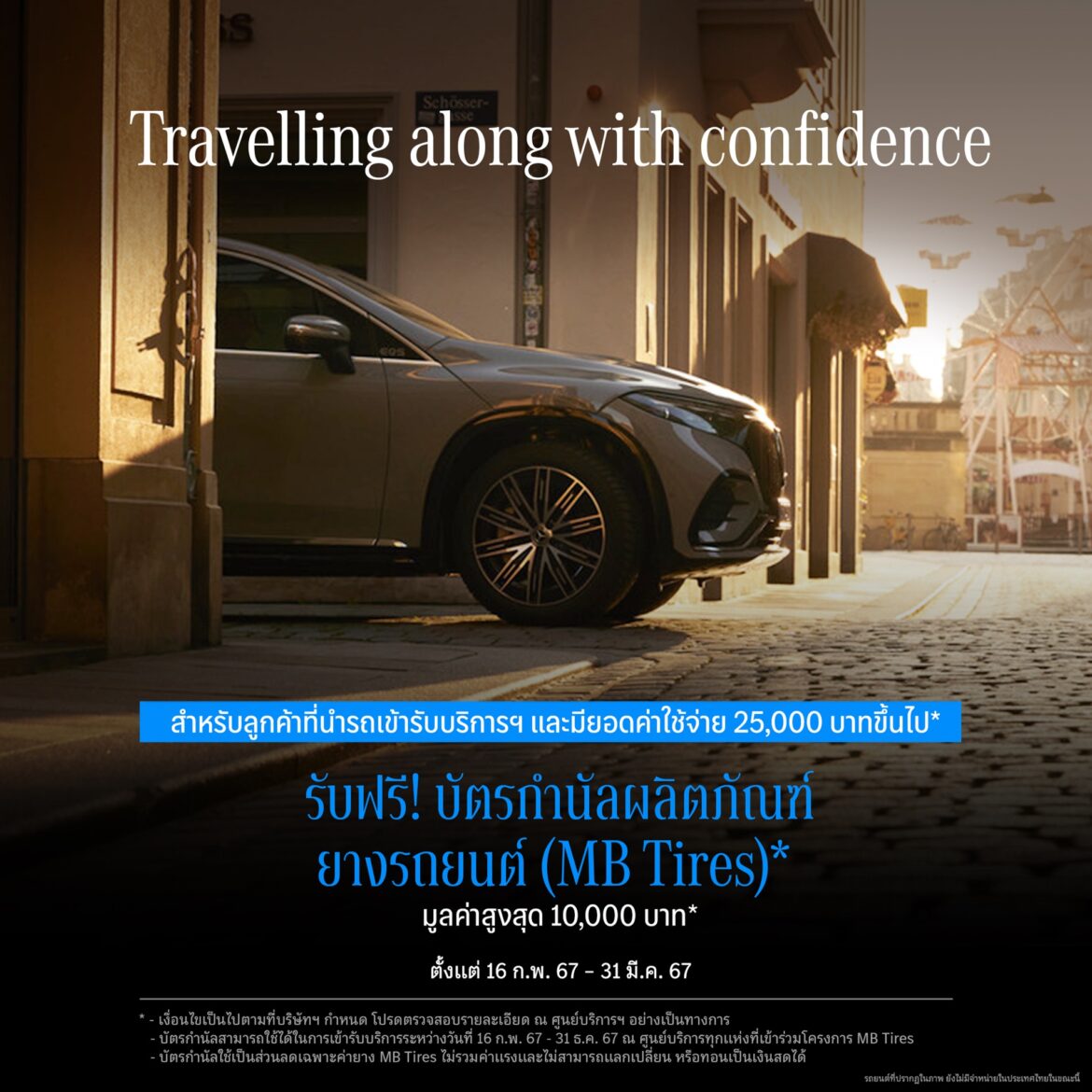 เมอร์เซเดส-เบนซ์ ประเทศไทย มอบความห่วงใยผ่านข้อเสนอและการบริการหลังการขายสุดพิเศษให้กับลูกค้ารถยนต์เมอร์เซเดส-เบนซ์ทุกรุ่น ตอบโจทย์ทุกการขับขี่และการโดยสารสู่การเดินทางครั้งใหม่ในช่วงซัมเมอร์ ให้ทุกไลฟ์สไตล์ขับเคลื่อนไปข้างหน้าอย่างมั่นใจด้วยแคมเปญ “Travelling along with Confidence” เมื่อลูกค้านำรถเข้ารับบริการที่ศูนย์บริการฯ อย่างเป็นทางการ สำหรับรถยนต์เมอร์เซเดส-เบนซ์ ทุกรุ่น (รวม Van model) ทุกช่วงอายุรถยนต์ ตั้งแต่วันที่ 16 กุมภาพันธ์ 2567 –