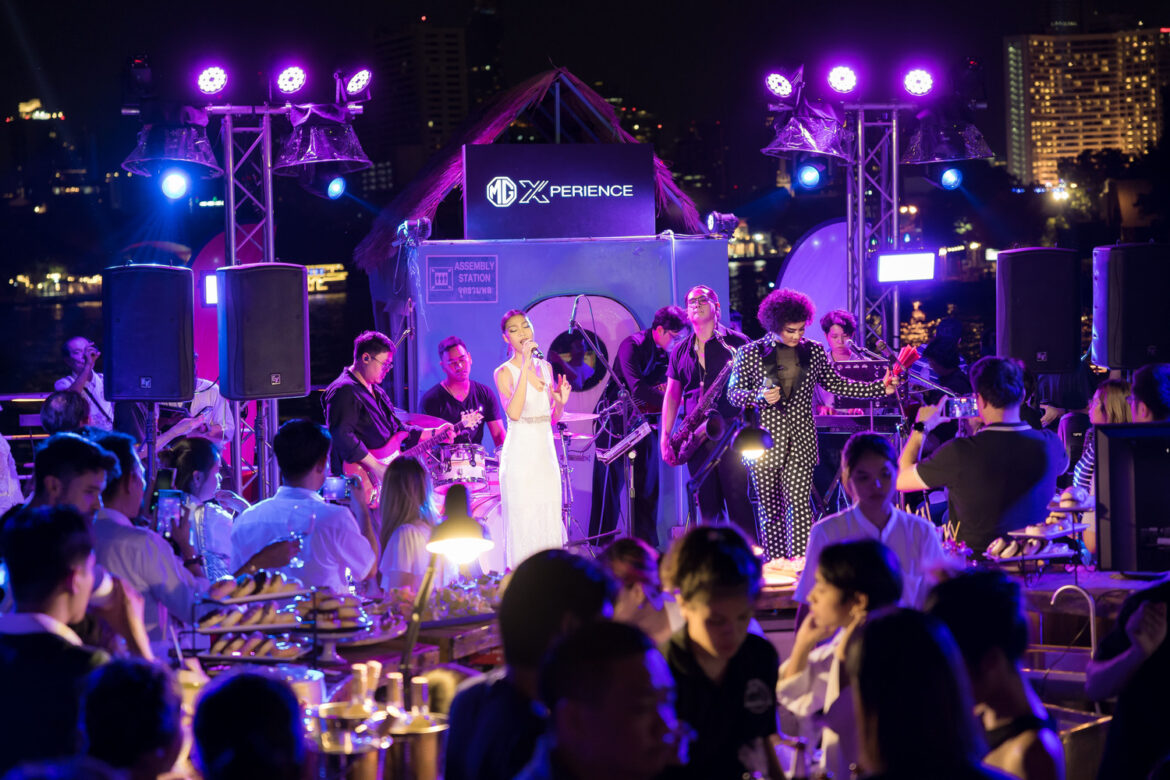 สำหรับกิจกรรม MG XPERIENCE จัดขึ้นภายใต้คอนเซ็ปต์ RIVERINE RHAPSODY ให้ลูกค้าและผู้ที่สนใจกว่า 200 คน ได้มาเปิดประสบการณ์ไปกับแบรนด์ เอ็มจี ออกล่องเรือชมความงามยามค่ำคืนของแม่น้ำเจ้าพระยา  ซึ่งเสียงร้องอันทรงพลังของ 2 ศิลปินคุณภาพจากเวที THE VOICE อย่าง “เพียว เอกพันธ์” และ “ข้าวฟ่าง กัลป์ธีรา” ได้สร้างความประทับใจ และสนุกสนานจนเพลงสุดท้าย ก่อนปิดเวทีด้วยการแสดงแดร็กควีนสุดอลังที่ดีไซน์มาเพื่องานฯ นี้โดยเฉพาะ