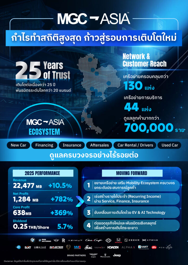 MGC-ASIA ทำสถิติกำไรสูงสุดใหม่ ผลจากระบบนิเวศ Mobility Ecosystem โครงสร้างแบรนด์พอร์ตโฟลิโอที่ลงตัว การสร้างกลยุทธ์ธุรกิจรถยนต์ไฟฟ้า และมาตรฐานการบริการครบวงจร ครอบคลุมทุกมิติ