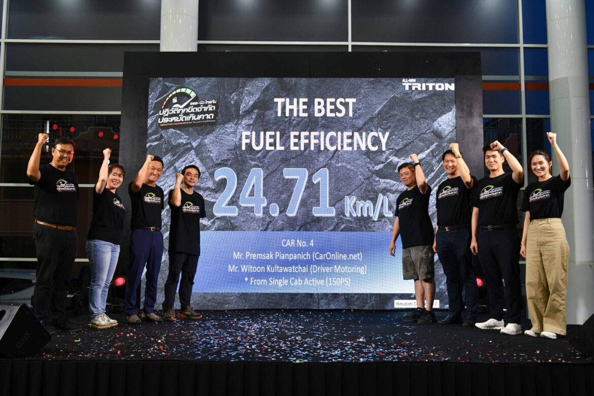 การทดสอบการขับในครั้งนี้ ซึ่งได้รับการกำหนดให้ใช้ความเร็วในระดับปกติของผู้ใช้งานทั่วไปตามกฎหมายระหว่าง 40 – 120 กม.ต่อชั่วโมง ด้วยอุณหภูมิจากเครื่องปรับอากาศที่ 25 องศาเซลเซียส สามารถทำสถิติการประหยัดน้ำมันได้อย่างยอดเยี่ยม ด้วยตัวเลขที่มากกว่าป้ายข้อมูลรถยนต์ตามมาตรฐานสากล หรือ ECO Sticker โดยผลการทดสอบพบว่า รถคันที่ประหยัดน้ำมันที่สุดคือรุ่น ออล-นิว มิตซูบิชิ ไทรทัน ซิงเกิ้ล แค็บ แอคทีฟ (150 แรงม้า) มีอัตราบริโภคน้ำมัน 24.71 กม.ต่อลิตร*