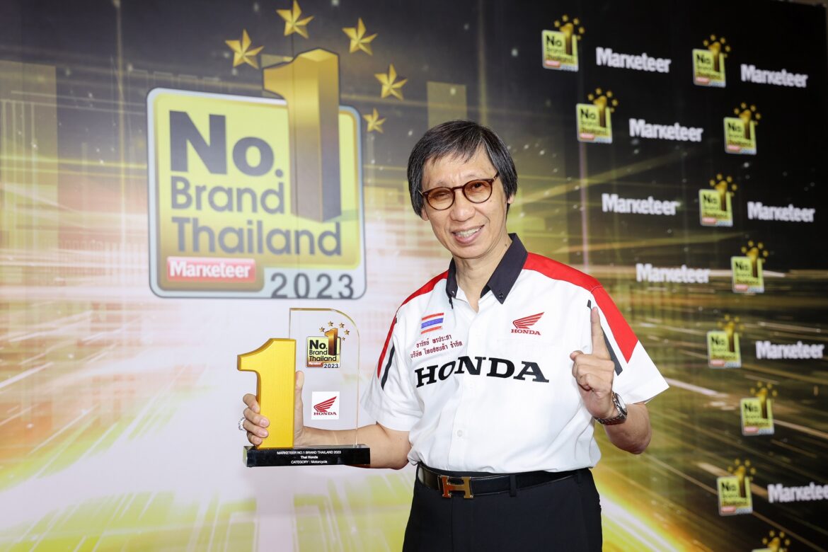 ฮอนด้า ตอกย้ำความสำเร็จในฐานะผู้นำอย่างต่อเนื่องด้วยการคว้ารางวัล “No.1 Brand Thailand “ ประจำปี 2023 ประเภทรถจักรยานยนต์ที่ครองใจผู้บริโภคเป็นอันดับ 1 จากผลสำรวจความนิยมของผู้บริโภคทั่วประเทศไทย โดยนิตยสาร Marketeer สื่อด้านการตลาดอันดับหนึ่งของประเทศไทย นับเป็นการคว้ารางวัลนี้เป็นปีที่ 12 ติดต่อกัน