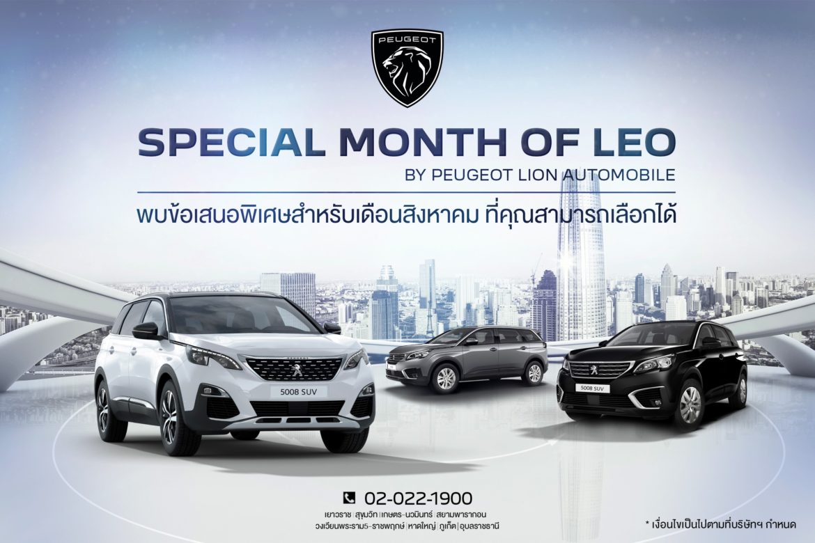 บริษัท เปอโยต์ ไลอ้อน ออโตโมบิล (ประเทศไทย) จำกัด ผู้แทนจำหน่ายรถยนต์ เปอโยต์ อย่างเป็นทางการในประเทศไทย หยิบยื่นความเร้าใจตลอดเดือนสิงหาคม กับกิจกรรม ‘Special Month of LEO’ สิงโตจัดให้ กับหลากหลายข้อเสนอพิเศษที่คุณเลือกได้ พร้อมความเร้าใจเหนือระดับ กับกิจกรรมพิเศษในวันที่ 8 เดือน 8 วันนี้ถีงสิ้นเดือนสิงหาคม 2564 ที่โชว์รูม เปอโยต์ ไลอ้อนออโตโมบิล ทุกสาขา