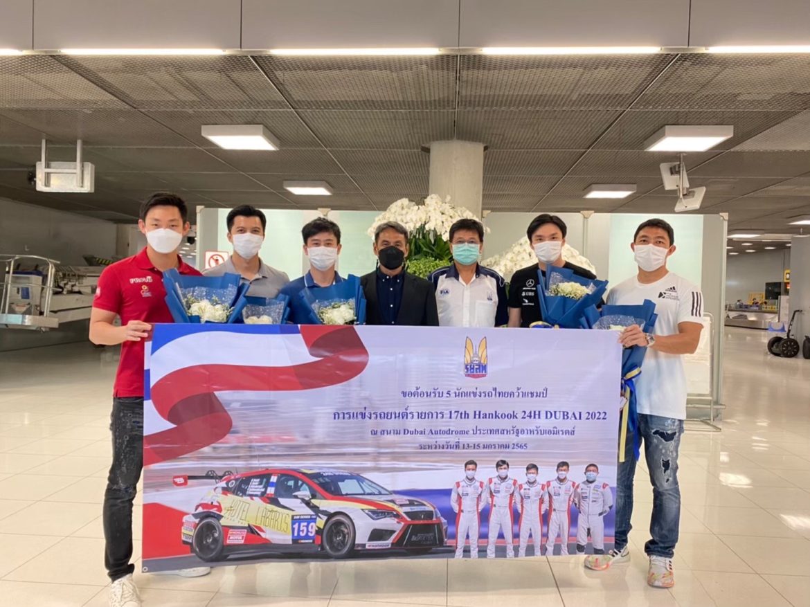 ” พฤฒิรัตน์ รัตนกุล เสรีเริงฤทธิ์ ” ประธานคณะกรรมการกีฬายานยนต์ (ที่ 4 จากซ้าย) และ สุพจน์ กสิกรรม ประธานอนุกรรมการ การแข่งขันรถยนต์ทางฝุ่น (ที่ 5 จากซ้าย) ราชยานยนต์สมาคมแห่งประเทศไทยในพระบรมราชูปถัมภ์ (ร.ย.ส.ท.) หรือ RAAT ร่วมแสดงความยินดีกับ 5 นักแข่งไทย นำโดย อนุสรณ์ อาศิรเลิศสิริ, กันตธีร์ กุศิริ, กันตศักดิ์ กุศิริ, ธนาตย์ เสถียรถิระกุล และ ภาสฤทธิ์ พรหมสมบัติ ที่คว้าแชมป์ระดับโลก(สนามแรก)ให้กับชาวไทยเป็นครั้งแรก ในรายการ Hankook 24H DUBAI ซึ่งจัดขึ้น ณ สนาม Dubai Autodrome ประเทศสหรัฐอาหรับเอมิเรตส์ เมื่อไม่นานนี้