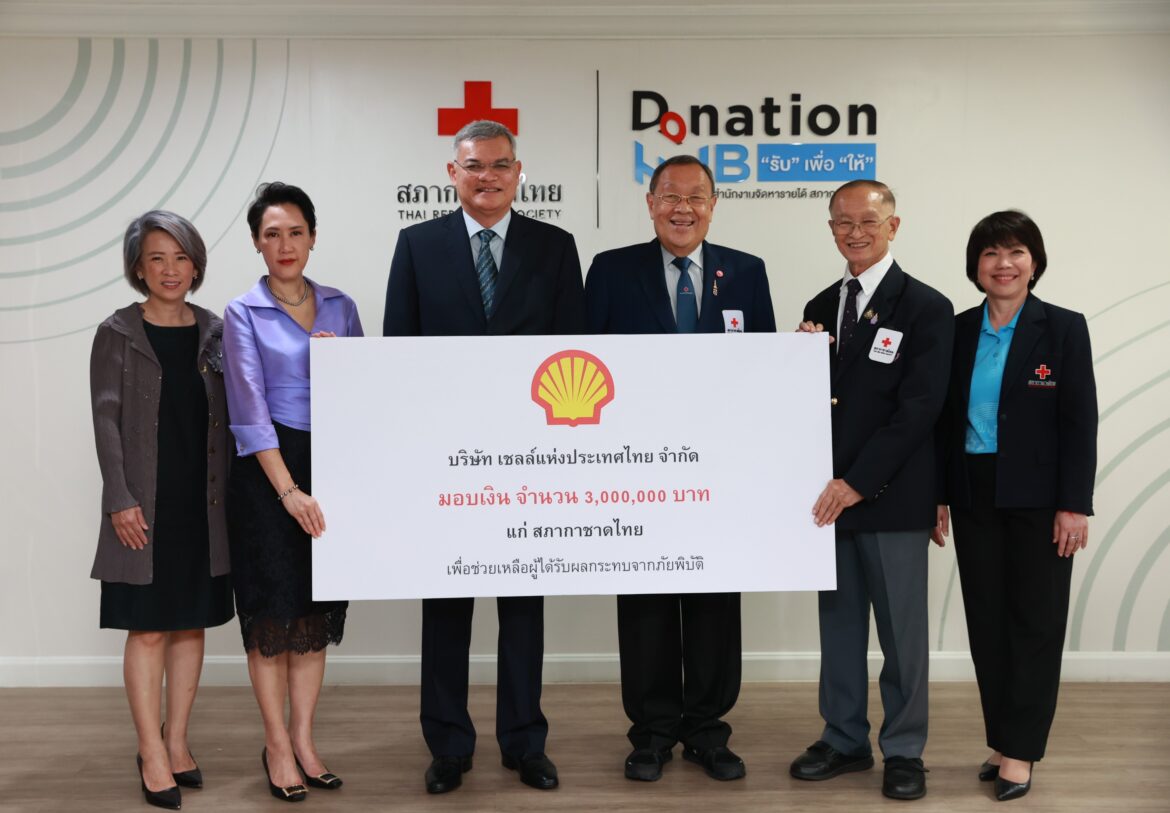 บริษัท เชลล์แห่งประเทศไทย จำกัด นำโดย นายปนันท์ ประจวบเหมาะ ประธานกรรมการ มอบเงินจำนวน 3,000,000 บาท แก่สภากาชาดไทย โดยมีนายขรรค์ ประจวบเหมาะ ผู้อำนวยการสำนักงานจัดหาราย และพลโท นายแพทย์อำนาจ บาลี ผู้อำนวยการสำนักงานบรรเทาทุกข์และประชานามัยพิทักษ์ เป็นผู้รับมอบ ด้วยตระหนักถึงสถานการณ์ความเดือดร้อนของประชาชนผู้กำลังประสบภัยพิบัติและต้องการความช่วยเหลือเพื่อบรรเทาความเดือดร้อนโดยเร่งด่วน สภากาชาดไทย ได้ดำเนินการช่วยเหลือผู้ประสบภัย โดยเน้นการเข้าถึงพื้นที่และชุมชนที่เดือดร้อน จัดอุปกรณ์ บุคลากร และความร่วมมือต่างๆ เพื่อคลี่คลายสถานการณ์ให้กลับสู่สภาวะปกติโดยเร็วและครบวงจร