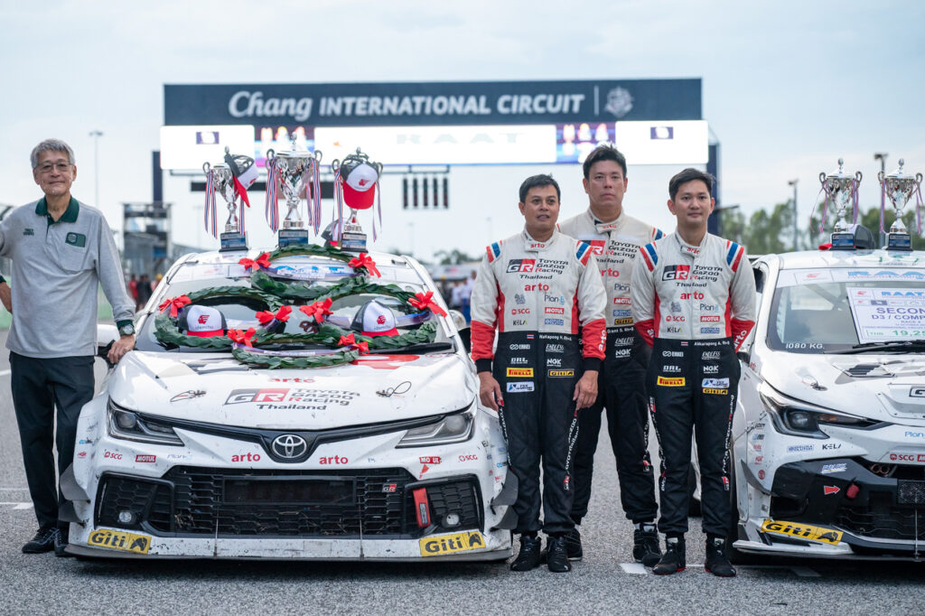 “TOYOTA GAZOO Racing Thailand” ทีมแข่งรถที่ยิ่งใหญ่และประสบความสำเร็จอย่างสูงของวงการมอเตอร์สปอร์ต ภายใต้การสนับสนุนของบริษัท โตโยต้า มอเตอร์ ประเทศไทย จำกัด ปิดฉากการแข่งขัน “RAAT Thailand Endurance Championship 2025” อย่างยิ่งใหญ่ หลังฝ่าด่านพิสูจน์ความแกร่งของทั้งรถและคนยาวนาน 8 ชม. จบสวยคว้าถ้วยอันดับ 1 ครองตำแหน่งแชมป์ประเทศไทยถ้วยพระราชทานฯ 4 ปีซ้อนไปแบบสมศักดิ์ศรี ในศึกสุดท้ายสนาม 4 ระหว่างวันที่ 11-12 ตุลาคม 2568 ณ สนามช้าง อินเตอร์เนชั่นแนล เซอร์กิต จ.บุรีรัมย์