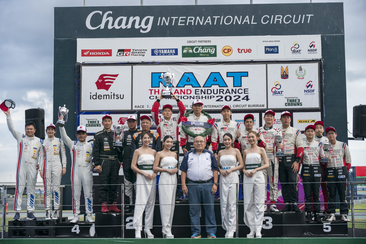 “TOYOTA GAZOO Racing Thailand” ทีมแข่งรถที่ยิ่งใหญ่และประสบความสำเร็จอย่างสูงของวงการมอเตอร์สปอร์ต โชว์พลังความแกร่งในการแข่งขันรถยนต์ทางเรียบในรูปแบบมาราธอน “ชิงแชมป์ประเทศไทยถ้วยพระราชทานประจำปี 2567” รายการ RAAT Thailand Endurance Championship 2024 สนาม 3 ปิดฤดูกาล ขึ้นโพเดียมอันดับ 1 และ 3 แบบ Overall และรุ่น Touring Car พร้อมตำแหน่งแชมป์ประเทศไทยถ้วยพระราชทานประจำปี 2567 ไปครอง ณ สนามช้าง อินเตอร์เนชั่นแนล เซอร์กิต จ.บุรีรัมย์ ในระหว่างวันที่ 14-15 กันยายน 2567