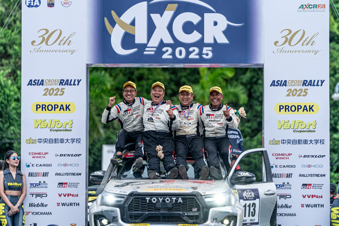 ศึก “30th Asia Cross Country Rally 2025” (AXCR 2025) ทีมส่งรถ Hilux REVO GR SPORT 4×4 กระบะแกร่ง สายพันธุ์สปอร์ต ดีไซน์ดุดัน ลงแข่งขันในรุ่น T1D จำนวน 2 คัน แบ่งเป็น 8 ช่วงการแข่งขัน หรือ 8 LEG การแข่งขันเริ่มต้นใน LEG 1-3 จากพัทยา มุ่งหน้าปราจีนบุรี และเขาใหญ่ นครราชสีมา LEG1 เป็นเส้นทางดินแข็งและขรุขระ เต็มไปด้วยหลุมเนิน LEG 2-3 ยากขึ้น เต็มไปด้วยหิน หลุมลึกและบางส่วนเป็นโคลน ในช่วง LEG 4 และ LEG 6 เนื่องจากเส้นทางเดิมวางไว้ค่อนข้างใกล้เขตชายแดนทำให้ผู้จัดยกเลิกเพื่อความปลอดภัย แข่งต่อใน LEG 5 กลับมาใช้เส้นทางพัทยา-ปราจีนบุรี ซึ่งทวีความยากขึ้นเมื่อฝนตกหนักเส้นทางกลายเป็นโคลน หลุมและบ่อเต็มไปหมด ปิดท้ายที่ LEG 7-8 เส้นทางปราจีนบุรี-พัทยา และมุ่งหน้าเข้าสู่เส้นชัยที่พัทยาเพื่อปิดฉากการแข่งขันสุดทรหด โดยหลังจบการแข่งขันผลปรากฏว่า