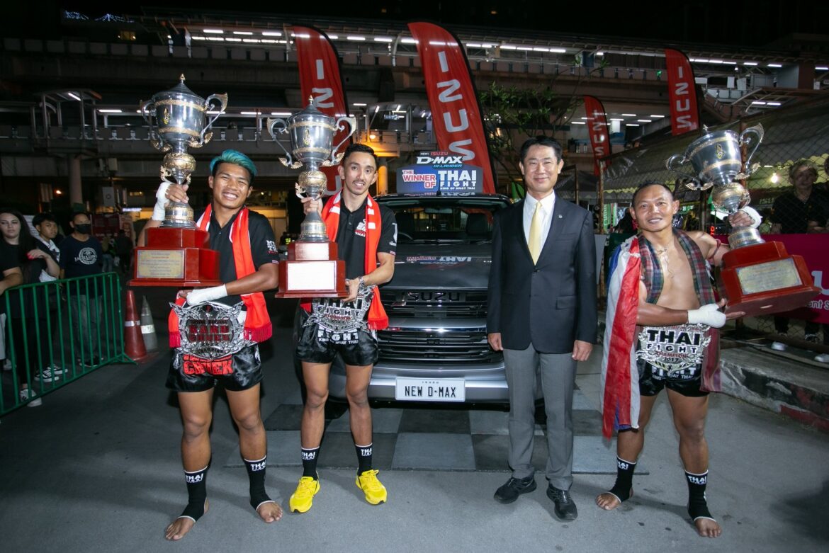 อีซูซุร่วมแสดงความยินดีกับ 3 นักมวยไทยที่สามารถครองถ้วยพระราชทานพระบาทสมเด็จพระเจ้าอยู่หัวได้เป็นผลสำเร็จ ในการแข่งขันมวยไทยระดับโลก “THAI FIGHT 2022” รอบชิงชนะเลิศ ภายใต้ชื่องาน “THAI FIGHT 100 ปี นครบาล” เนื่องในโอกาสที่กองบัญชาการตำรวจนครบาล ครบรอบ 100 ปี ซึ่งจัดขึ้นอย่างยิ่งใหญ่ จัดเต็มแสงสีเสียงสุดอลังการเอาใจคนกรุงเทพฯ ณ ลานหน้าอาคารนิมิบุตร สนามกีฬาแห่งชาติ กรุงเทพมหานคร