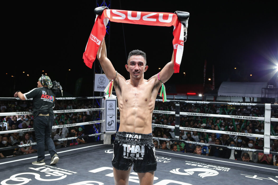 การแข่งขัน “THAI FIGHT 2022” รอบรองชนะเลิศ จัดเต็มความสนุกสุดมันภายใต้บรรยากาศแสงเสียงสปอร์ตเอ็นเตอร์เทนเมนท์ตามแบบฉบับไทยไฟท์ นำขบวนขุนพลนักชกไทยทั้ง เพชรธงชัย ที.บี.เอ็ม.ยิม, แสนชัย พี.เค.แสนชัยมวยไทยยิม, เต็งหนึ่ง ศิษย์เจ๊สายรุ้ง, ป.ต.ท. ว.รุจิรวงศ์ และ ไทรโยค พุ่มพันธุ์ม่วง ร่วมประชันกับเหล่านักมวยที่มีชื่อเสียงจากหลากหลายประเทศทั่วโลก อาทิ ฝรั่งเศส, เบลเยี่ยม, นอร์เวย์ และ ตูนีเซีย เป็นต้น ประชันกันในรูปแบบกีฬามวยไทยทั้งในรุ่นสวมนวมและคาดเชือกเต็มรูปแบบ ซึ่งคู่เอกรอบรองชนะเลิศนี้ ได้แก่ “เพชรธงชัย ที.บี.เอ็ม.ยิม” แชมป์อีซูซุคัพซูเปอร์ไฟต์ 2022 พบกับ เอลิต ซามพอร์ นักชกจากประเทศกัมพูชา ในรุ่นเวลเทอร์เวท พิกัด 67 กิโลกรัม แบบสวมนวม เริ่มระฆังยกแรกทั้งสองฝ่ายต่างออกอาวุธกันอย่างดุเดือด ทำเอาแฟนมวยลุ้นกันแบบสุดตัวทั้ง 3 ยก ถึงแม้เพชรธงชัย ที.บี.เอ็ม.ยิม จะได้แผลและมีเลือดออกให้เห็น แต่ก็สามารถชนะคะแนนนักชกจากกัมพูชาไปได้แบบเฉียดฉิว พร้อมก้าวสู่เวทีเกียรติยศรอบชิงชนะเลิศอย่างเต็มภาคภูมิปลายปีนี้