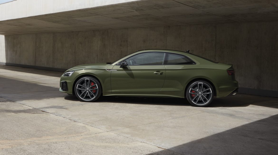The New Audi A5 Coupé 45 TFSI quattro S line Black Edition ถูกออกแบบตามแนวทางการออกแบบใหม่ (New Design Language) ที่โดดเด่นมีเอกลักษณ์เฉพาะตัว มุมมองของตัวรถตั้งแต่ด้านหน้าถึงด้านท้ายเฉียบคมลงตัว สปอร์ตเรียบหรู สะดุดตา และยังมีทางเลือกใหม่ที่ไม่เหมือนใครใน segment สีภายนอกใหม่ District Green หรือสีเขียวทหารพราน ตัดกับคาลิปเปอร์เบรกสีแดงหน้า-หลัง สมรรถนะมาพร้อมขุมพลังเครื่องยนต์ Mild Hybrid แบบ 4 สูบ พร้อมเทอร์โบชาร์จ ทำงานร่วมกับระบบขับเคลื่อน 4 ล้อ quattro with ultra technology ปรับกระจายแรงบิดไปยังล้อทั้งสี่ได้อย่างอิสระภายในเสี้ยววินาที