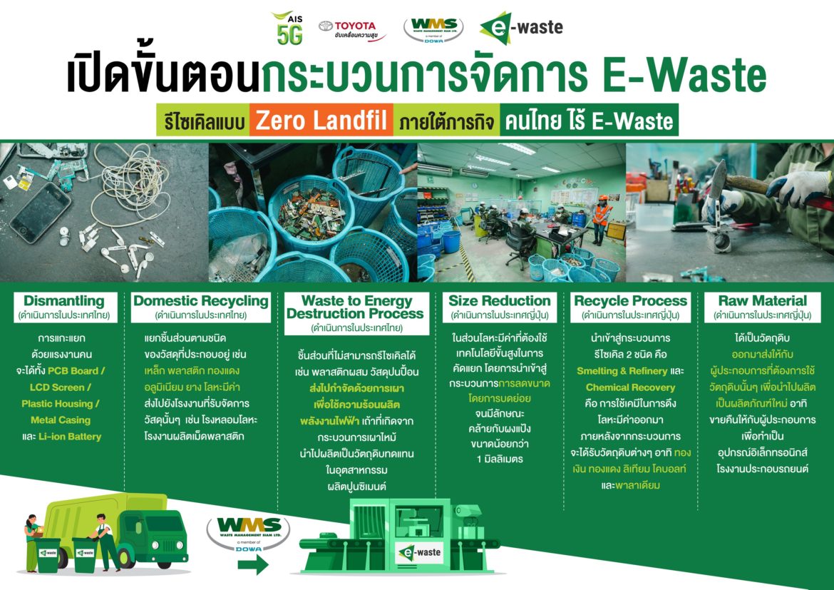 โดยทั้ง 2 องค์กร ต่างมีเป้าหมายร่วมกันในการดำเนินงานและรณรงค์ด้านสิ่งแวดล้อมเพื่อนำไปสู่การแก้ปัญหาขยะอิเล็กทรอนิกส์อย่างยั่งยืน ทั้งการตั้งจุดรับทิ้งและรวบรวมขยะอิเล็กทรอนิกส์ ณ สำนักงานของ TOYOTA และได้ต่อยอดกระบวนการการจัดการนำขยะอิเล็กทรอนิกส์ที่สมบูรณ์หรือ Value Chain ตั้งแต่การแยกประเภทขยะ การทิ้ง การคัดแยก การรีไซเคิล ทำลาย ไปจนถึงการนำกลับมาใช้ใหม่  พร้อมเปิดตัวการทำงานร่วมกับพาร์ทเนอร์ของโตโยต้า นั่นคือ  บริษัท เวสท์ แมเนจเม้นท์ สยาม จำกัด หรือ WMS ผู้นำด้านการจัดการของเสียทุกประเภทอย่างครบวงจร ที่มีเจตนารมณ์มุ่งมั่นที่จะเป็นส่วนหนึ่งในการดูแลสิ่งแวดล้อมของประเทศไทย โดยการนำองค์ความรู้จากบริษัทแม่คือ DOWA Eco System Ltd. ประเทศญี่ปุ่นที่ได้รับการพัฒนาเทคโนโลยีมากว่า 140 ปี มาเสริมประสิทธิภาพในการนำ E-Waste ที่รวบรวมได้จากโครงการฯ เข้าสู่กระบวนการรีไซเคิลแบบ Eco Friendly อย่างถูกต้องตามมาตรฐานสากล โดยมุ่งเน้นความร่วมมือในกระบวนการเตรียมความพร้อมของขยะอิเล็กทรอนิกส์ก่อนเข้าสู่กระบวนการรีไซเคิล ด้วยเตาเผาแบบ Fix Combustion Furnace ของ WMS ที่นำเทคโนโลยีการจัดการแบบ Gasification จากประเทศญี่ปุ่นมาใช้ เพื่อช่วยกำจัดสารอันตรายที่หลงเหลือให้อยู่ในอุณหภูมิที่เหมาะสม ลดผลกระทบต่อสิ่งแวดล้อมจากกระบวนการเผาอย่างสูงสุด