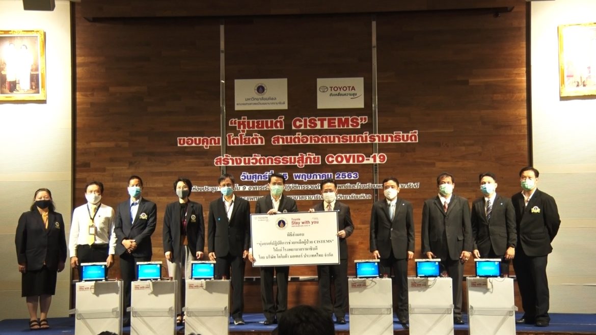 นายมิจิโนบุ ซึงาตะ กรรมการผู้จัดการใหญ่ บริษัทโตโยต้า มอเตอร์ ประเทศไทย จำกัด เป็นตัวแทนองค์กรในการส่งมอบหุ่นยนต์ปฏิบัติการช่วยเหลือผู้ป่วย “CISTEMS” จำนวน 8 ตัว ที่พัฒนาการขึ้นเพื่อใช้ปฏิบัติภารกิจทางการแพทย์ ในการดูแลและติดตามอาการของผู้ป่วยติดเชื้อ แก่โรงพยาบาลรามาธิบดี และ โรงพยาบาล อีก 4 แห่งในภาคใต้ โดยมี ศาสตราจารย์ นายแพทย์ปิยะมิตร ศรีธรา คณบดี คณะแพทยศาสตร์ โรงพยาบาลรามาธิบดี มหาลัยมหิดล เป็นตัวแทนรับมอบ ในวันที่ 15 พฤษภาคม 2563 ณ โรงพยาบาลรามาธิบดี