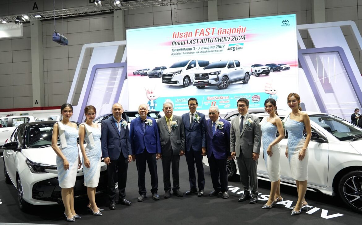 บริษัท โตโยต้า มอเตอร์ ประเทศไทย จำกัด เข้าร่วมแสดงรถในงาน FAST Auto Show Thailand 2024 นำเสนอยนตรกรรมโตโยต้าล่าสุดและรถตกแต่งพิเศษหลากหลายรุ่น พิเศษสุด! กับข้อเสนอสำหรับลูกค้าที่จองรถโตโยต้าทุกรุ่นภายในงาน ณ ฮอลล์ EH 102-104 ไบเทค บางนา ระหว่างวันที่ 3-7 กรกฎาคม 2567 และที่ผู้แทนจำหน่ายโตโยต้าทั่วประเทศ