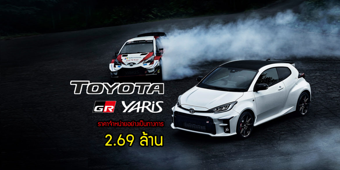 บริษัท โตโยต้า มอเตอร์ ประเทศไทย จำกัด เปิดเผยราคาจำหน่ายของรถสปอร์ต Hot Hatch สายพันธุ์แรง แชมป์แรลลี่โลก “Toyota GR Yaris” 2.69 ล้านบาท สำหรับผู้ที่รักความแรง สนุกทุกการขับขี่ มีจำนวนจำกัดเพื่อผู้ที่ชื่นชอบความแตกต่างไม่เหมือนใคร
