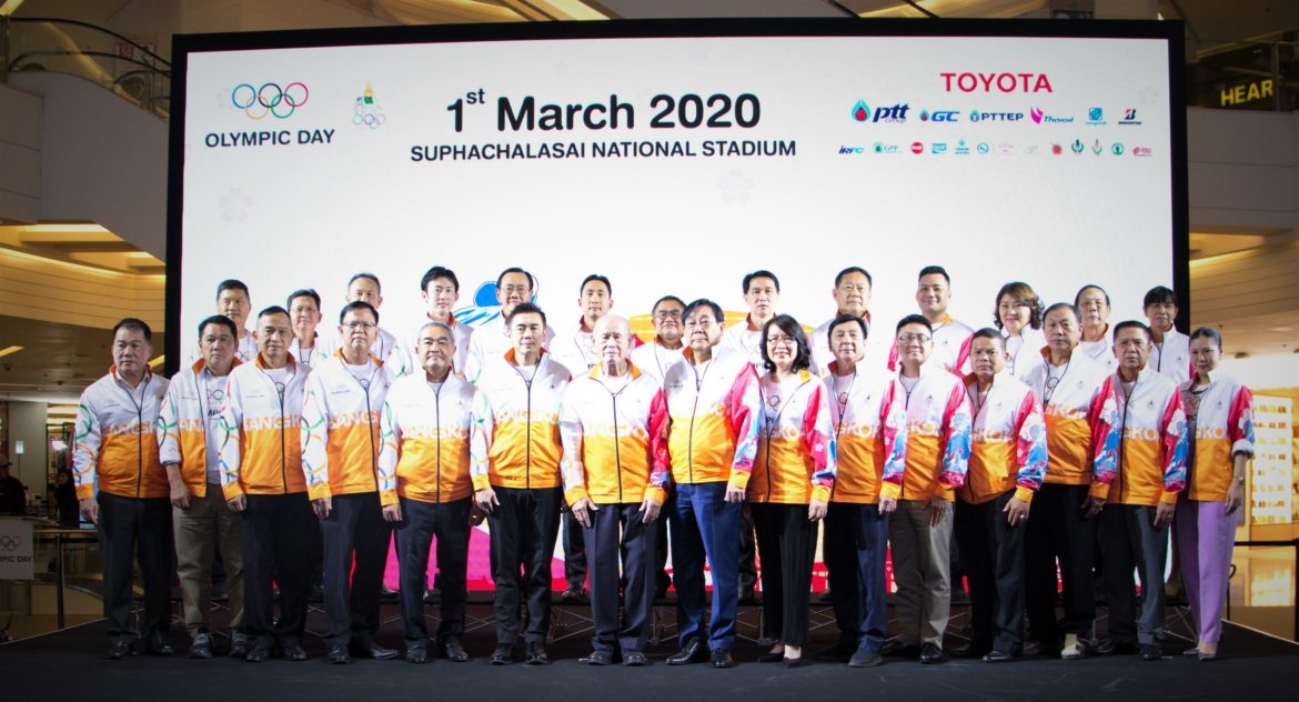 นายศุภชัย สินสุวรรณรักษ์ ผู้ช่วยกรรมการผู้จัดการใหญ่ บริษัท โตโยต้า มอเตอร์ ประเทศไทย จำกัด พร้อมด้วย พลตรีจารึก อารีราชการัณย์ รองประธานและเลขาธิการคณะกรรมการโอลิมปิกแห่งประเทศไทย และนายพิชัย ชุณหวชิร รองประธานคณะกรรมการโอลิมปิกแห่งประเทศไทย ในพระบรมราชูปถัมภ์ และนางปิยะดา จงพยุหะ ผู้ช่วยกรรมการผู้จัดการใหญ่ บริหารชื่อเสียงองค์กรและกิจการเพื่อสังคม บริษัท ปตท. จำกัด (มหาชน) เข้าร่วมงานแถลงข่าวการจัดกิจกรรม เดิน-วิ่ง 2020 OLYMPIC DAY ณ ศูนย์การค้า สยามพารากอน แฟชั่นฮอลล์ ชั้น 1