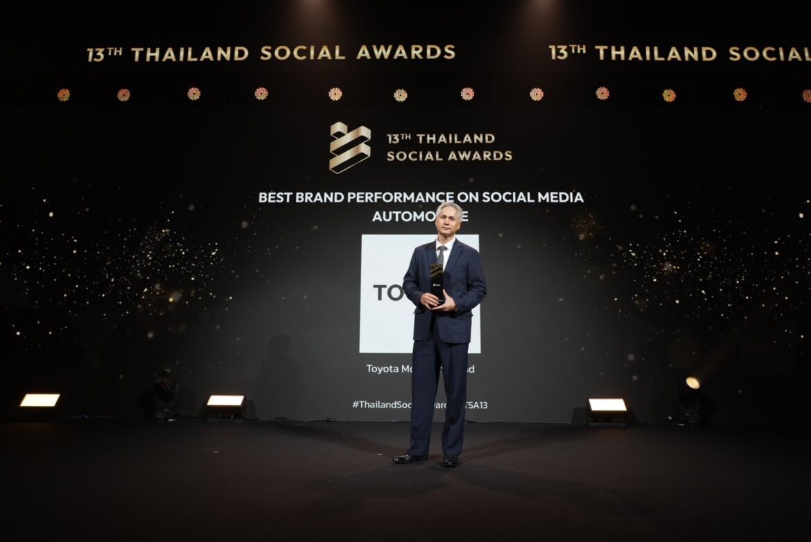 บริษัท โตโยต้า มอเตอร์ ประเทศไทย จำกัด คว้ารางวัล “BEST BRAND PERFORMANCE ON SOCIAL MEDIA” หรือ “แบรนด์ที่ทำผลงานยอดเยี่ยมบนโลกโซเชียลมีเดีย” สาขากลุ่มธุรกิจรถยนต์ 5 ปีซ้อน (2021-2025) จากการประกาศรางวัล THAILAND SOCIAL AWARDS ครั้งที่ 13 โดยมี นายอภิสิทธิ์ กาบบัวลอย ผู้จัดการโครงการ ฝ่ายบริหารการตลาดและประชาสัมพันธ์ เป็นตัวแทนรับมอบรางวัล เมื่อวันที่ 28 กุมภาพันธ์ ที่ผ่านมา ณ ทรู ไอคอน ฮอลล์ ไอคอนสยาม ชั้น 7