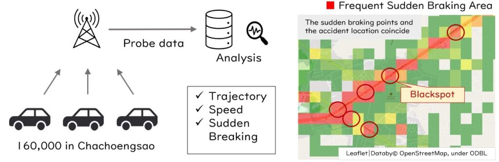 ด้าน TMF มุ่งมั่นในการค้นหาแนวทางใหม่ๆ เพื่อปรับปรุงความปลอดภัยบนท้องถนนโดยใช้ข้อมูลและ เทคโนโลยีขั้นสูง ร่วมกับสถาบันเทคโนโลยีแห่งเอเชีย  โดย TMF ได้ดำเนินโครงการระยะที่ 1 ในจังหวัดฉะเชิงเทรา โดยใช้ข้อมูลจากรถยนต์โตโยต้าที่ติดตั้งระบบเก็บข้อมูลการขับขี่ ทั้งนี้ ข้อมูลเชิงลึก และมาตรการแก้ไขที่ได้จากเฟสแรกจะถูกนำไปพัฒนาเพิ่มเติมร่วมกับชุดข้อมูลและเทคโนโลยีอื่นๆ ในโครงการระยะที่ 2 ซึ่งกำลังดำเนินการอยู่ในเขตจตุจักร กรุงเทพมหานคร