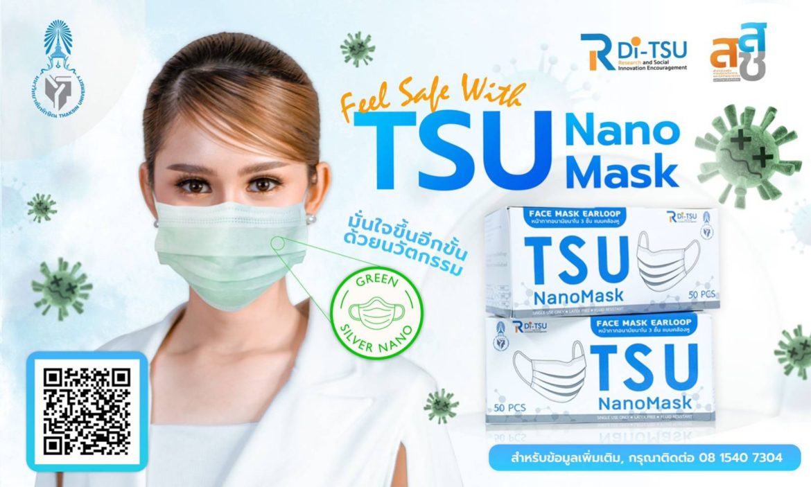 ” ดร.กรกนก อุบลชลเขต ” อาจารย์ประจำสาขาวิชาวิศวกรรมยางและพอลิเมอร์ คณะวิศวกรรมศาสตร์ ผู้วิจัยผลิตภัณฑ์หน้ากากอนามัยทางการแพทย์เคลือบซิลเวอร์นาโน TSU NANOMASK กล่าวว่า หน้ากากอนามัย TSU NANOMASK เป็นผลิตภัณฑ์ต้นแบบที่จะนำไปสู่ผลิตภัณฑ์เชิงพาณิชย์ จากการพัฒนาต่อยอดผลงานอนุสิทธิบัตร เรื่องกรรมวิธีการผลิตกระดาษสำหรับทำบรรจุภัณฑ์เพื่อยืดอายุผักและผลไม้ อนุสิทธิบัตรเลขที่ 12183 โดยมีแนวคิดในการนำ นวัตกรรมกรีนซิลเวอร์นาโนมาใช้สำหรับหน้ากากอนามัย ความพิเศษของงานวิจัยนี้ คือ การผลิตซิลเวอร์นาโนด้วยกระบวนการสีเขียว ซึ่งเป็นกระบวนการที่ใช้สารจากธรรมชาติ นั้นก็คือน้ำตาลเป็นวัสดุหลักในการสังเคราะห์ อีกทั้งได้พัฒนาขั้นตอนในการผลิตให้ทำง่าย ไม่ยุ่งยากซับซ้อน มีความปลอดภัย และต้นทุนต่ำ โดยมีส่วนประกอบหลัก คือ น้ำ น้ำตาล และเกลือของเงินหรือซิลเวอร์ไนเตรท นวัตกรรมสารเคลือบวัสดุด้วยซิลเวอร์นาโนที่ผลิตได้นอกจากมีประสิทธิภาพในการต่อต้าน และลดการติดเชื้อโรคต่างๆ ทั้งรูปแบบของสารคัดหลั่งหรือการสัมผัส และป้องกันเชื้อโรคที่ก่อให้เกิดกลิ่นไม่พึงประสงค์ได้ ในขณะที่หน้ากากอนามัยทั่วไปจะทำไม่ได้ อีกทั้งสามารถนำมาประยุกต์ใช้ได้หลากหลายเช่น การเคลือบหน้ากากอนามัย ลดการติดเชื้อโรคต่าง ๆ ได้ เช่น แบคทีเรีย เชื้อรา และไวรัส เป็นต้น